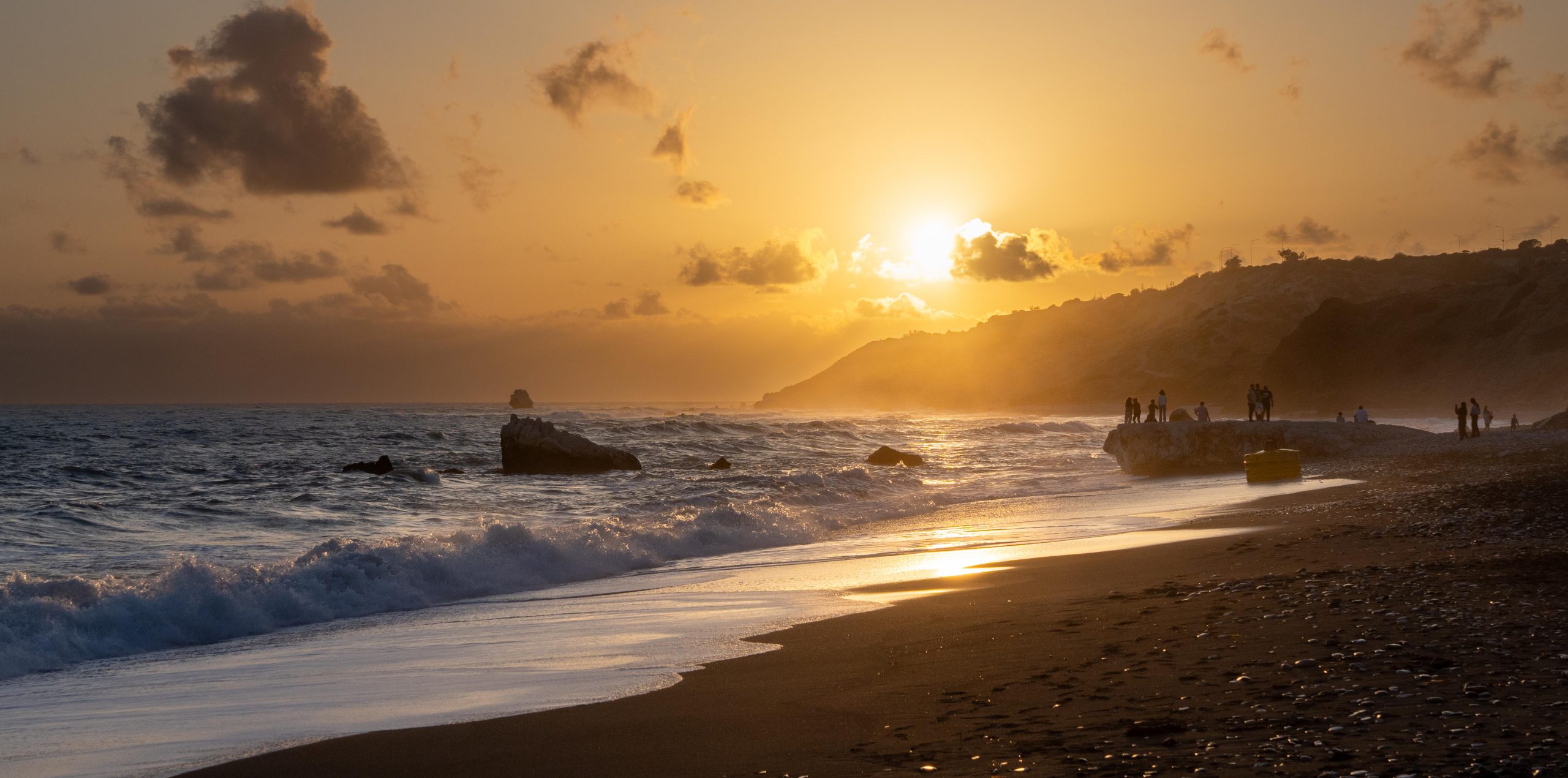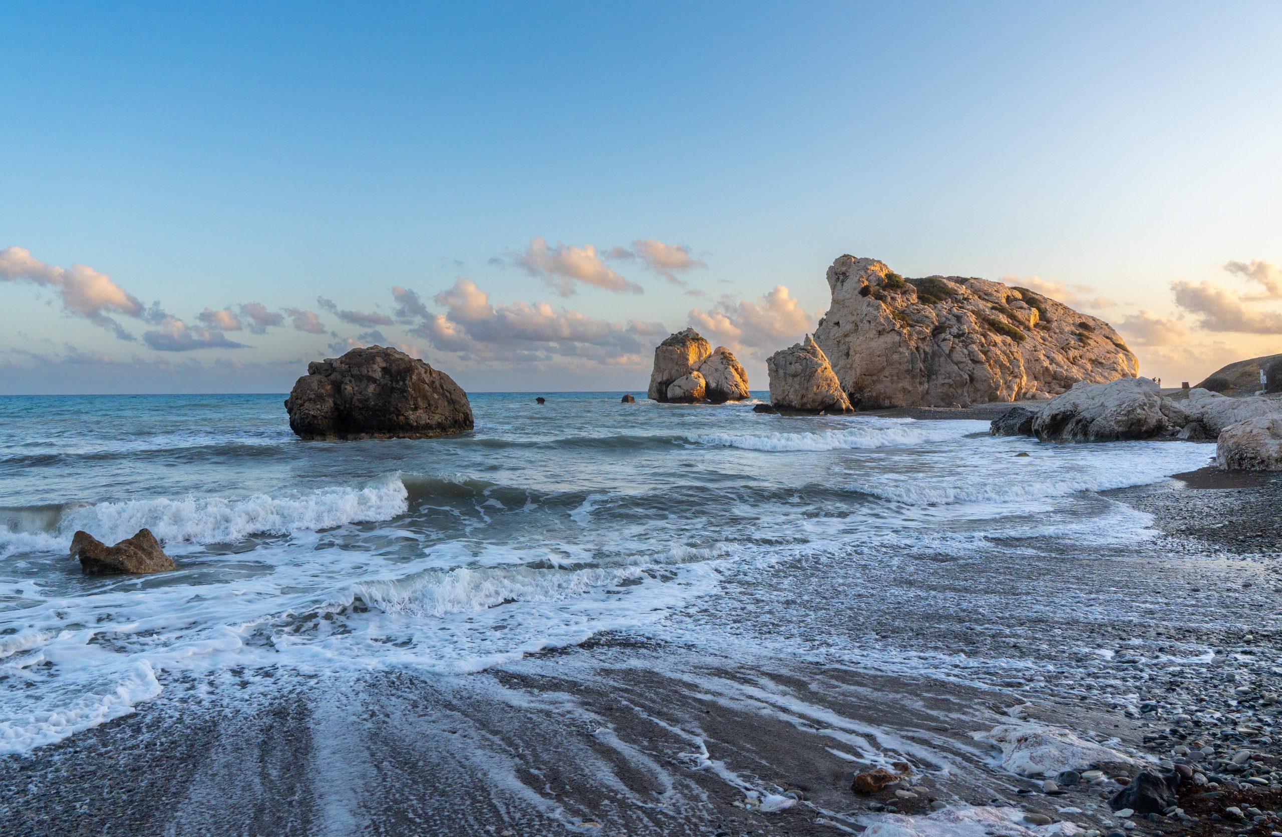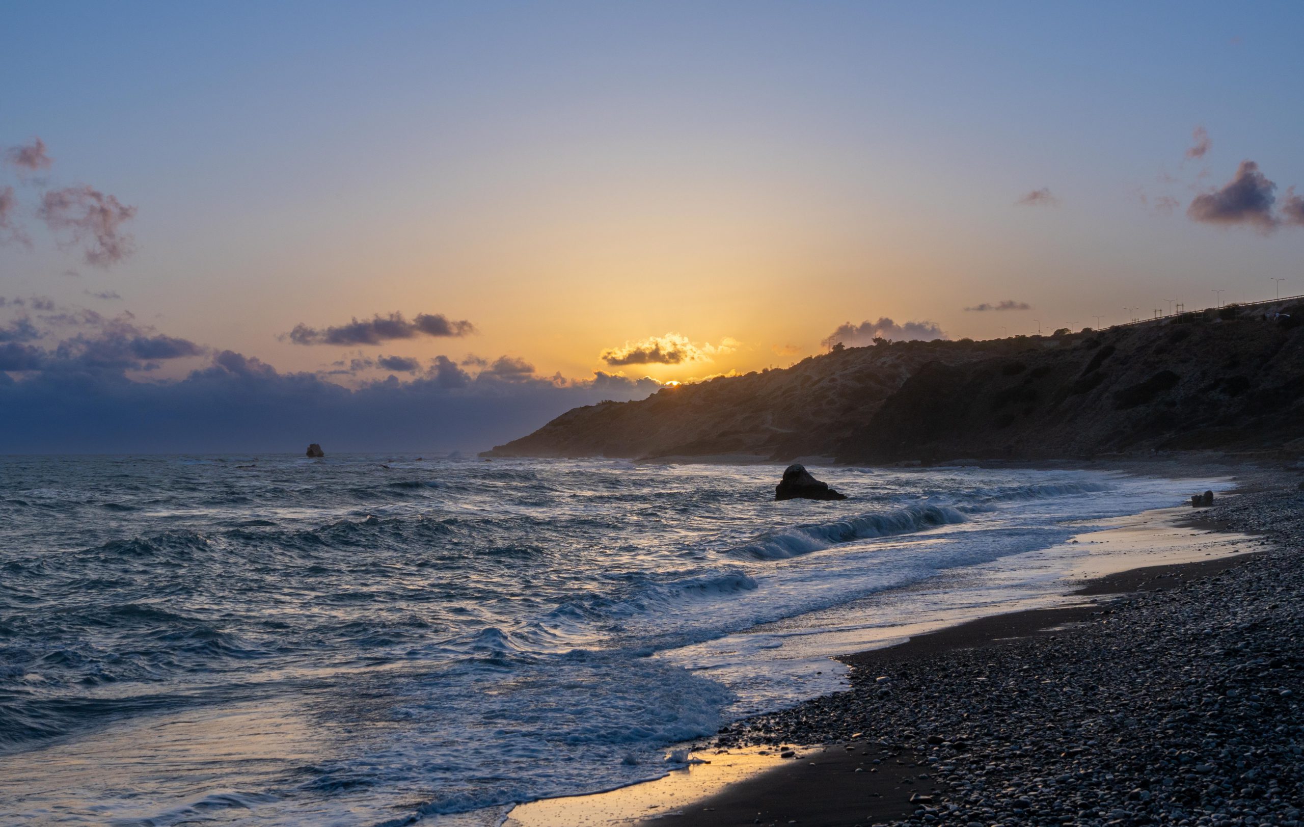 We landed in Larnaca in the late afternoon, where we picked up a car and then drove to Paphos. We stopped at Aphrodite’s rock on the way and managed to luckily time our visit with sunset