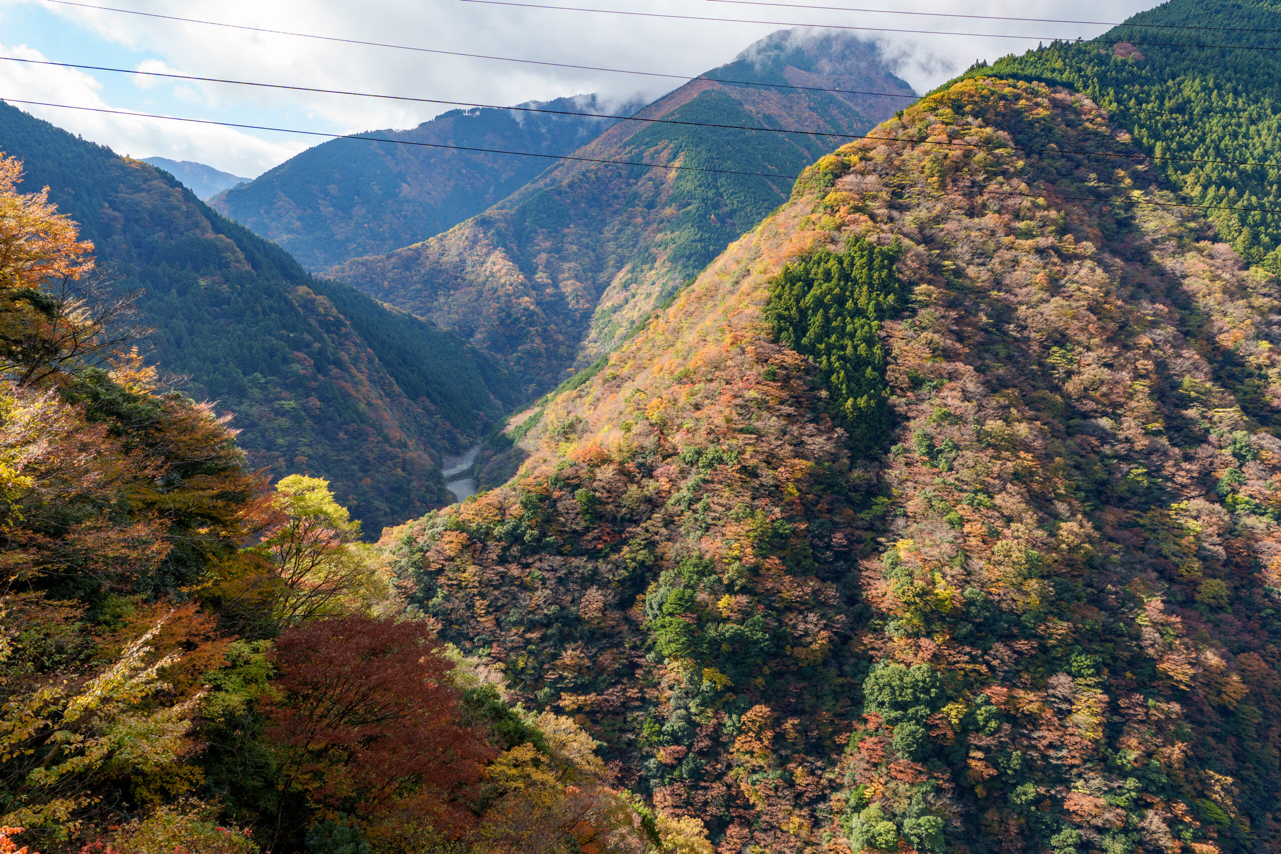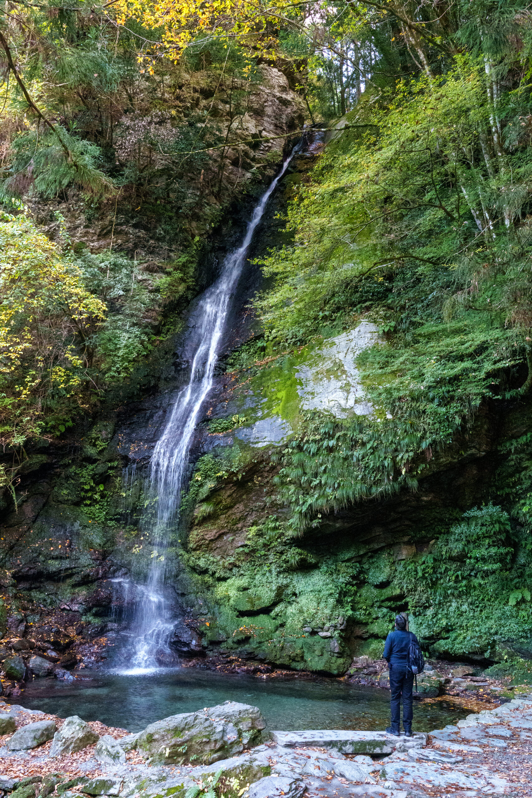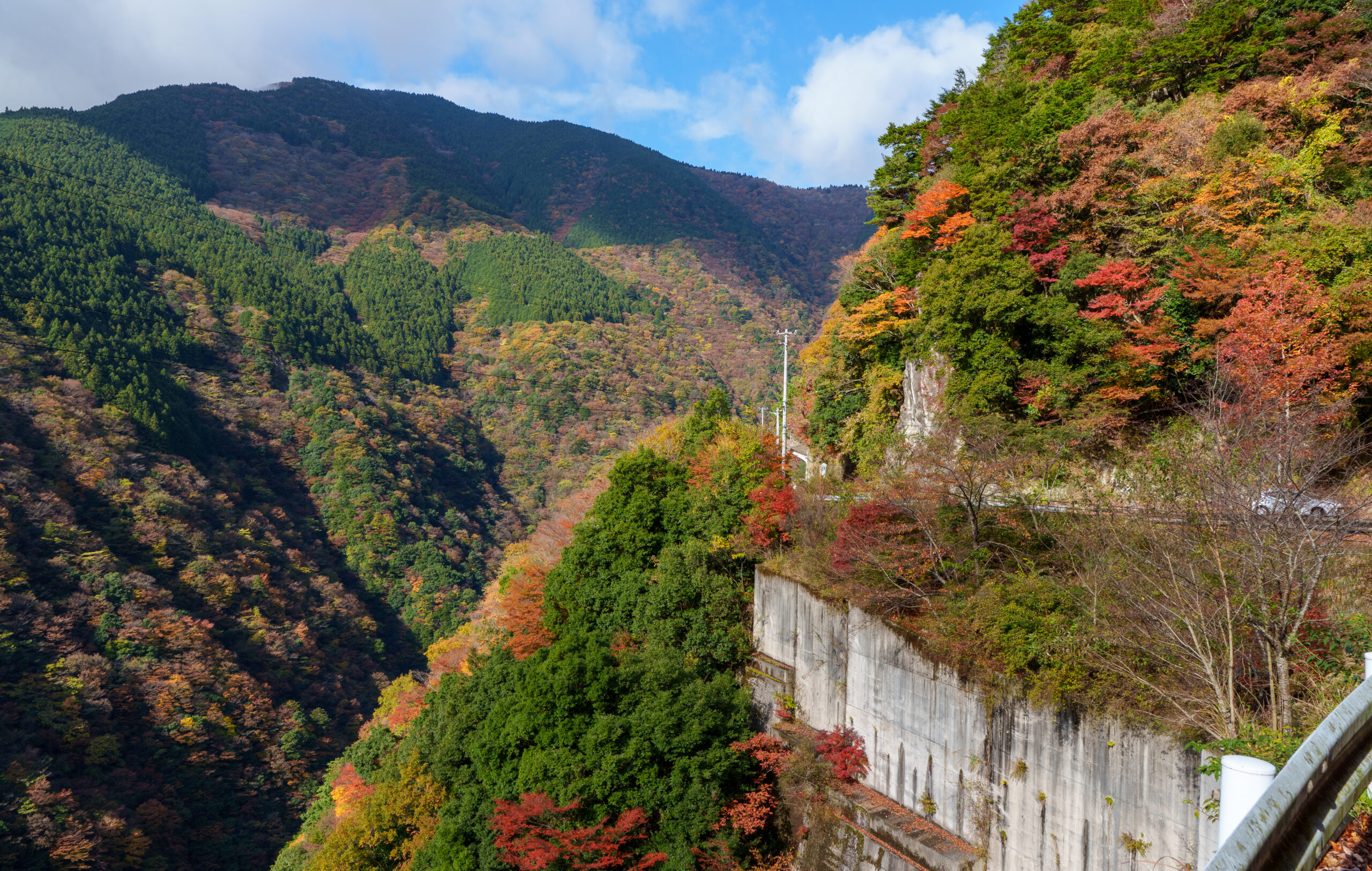 As we continued our way back through the valley, we stopped at Ryugo Cliffs Suspension Bridge. This time it was a modern metal bridge, very high across the valley with some nice autumn colours.