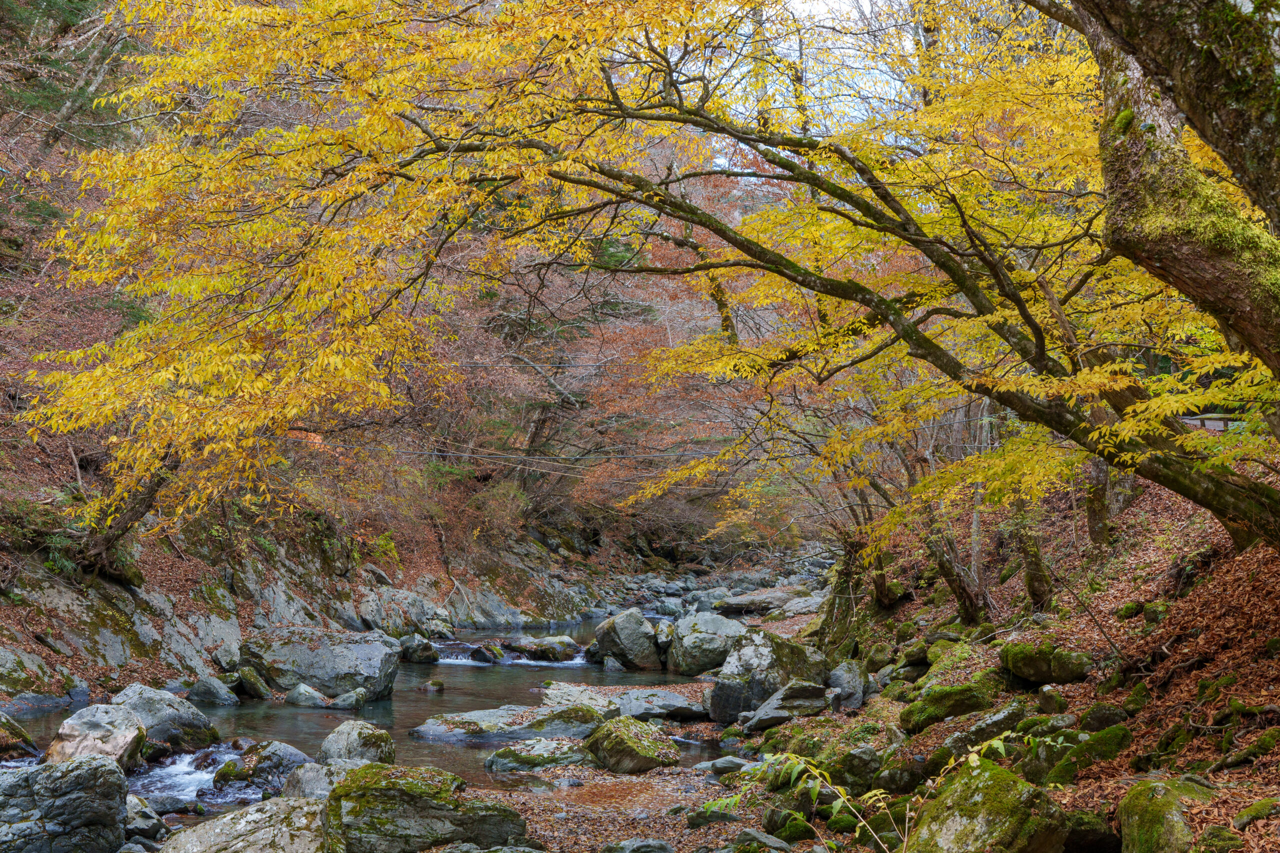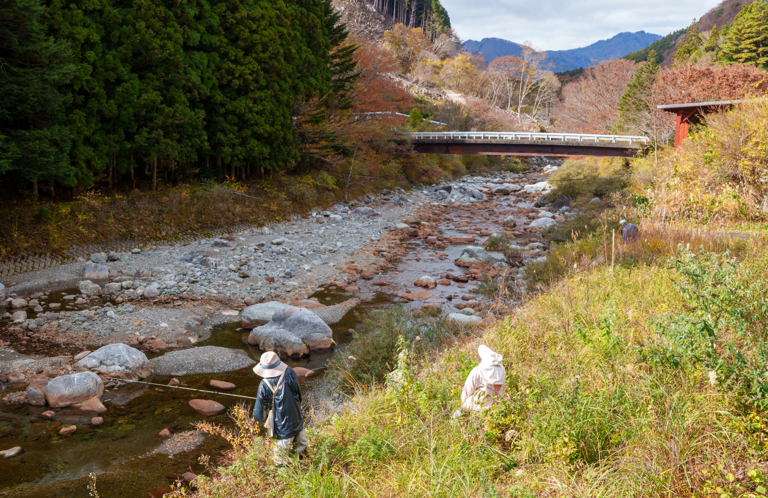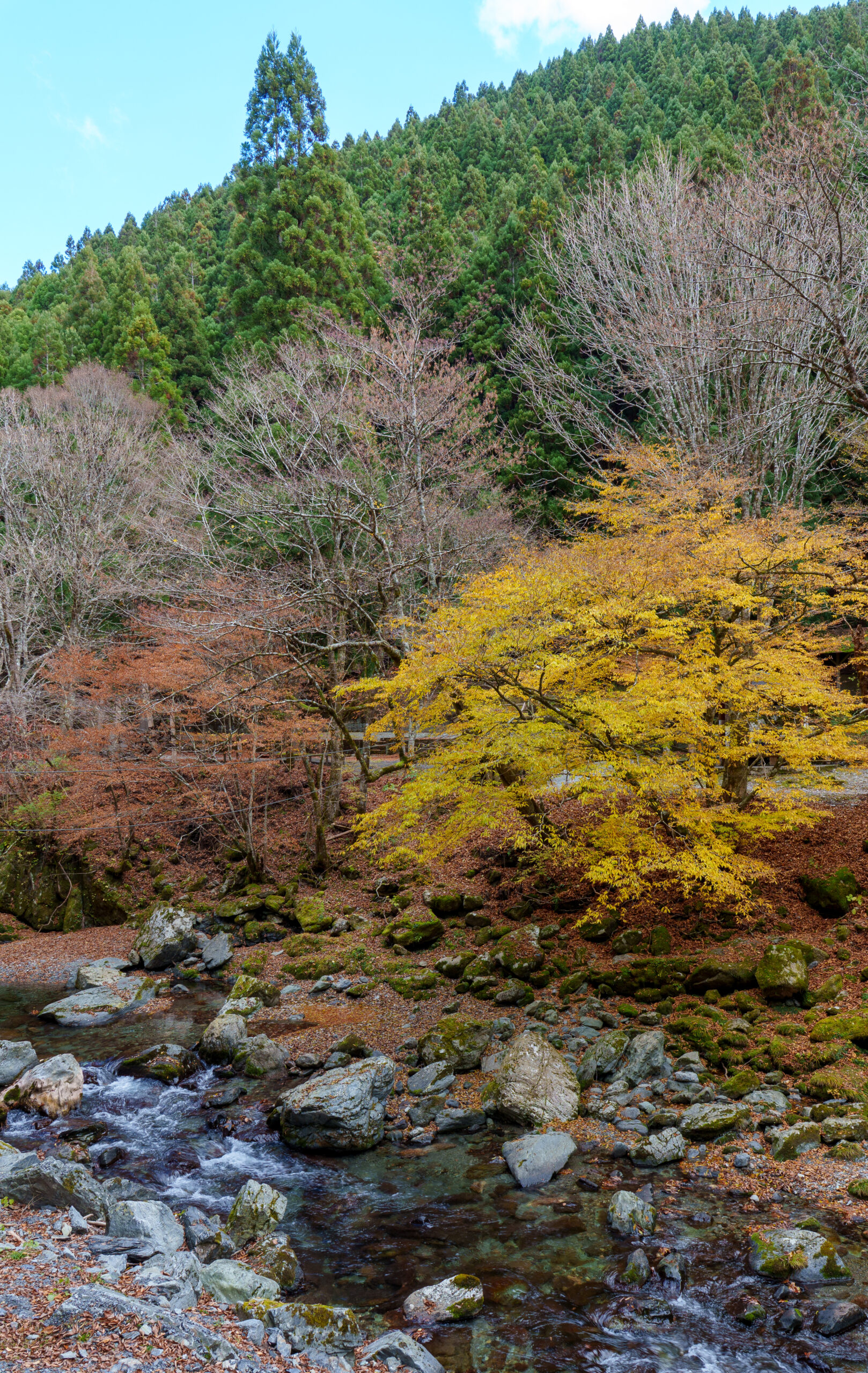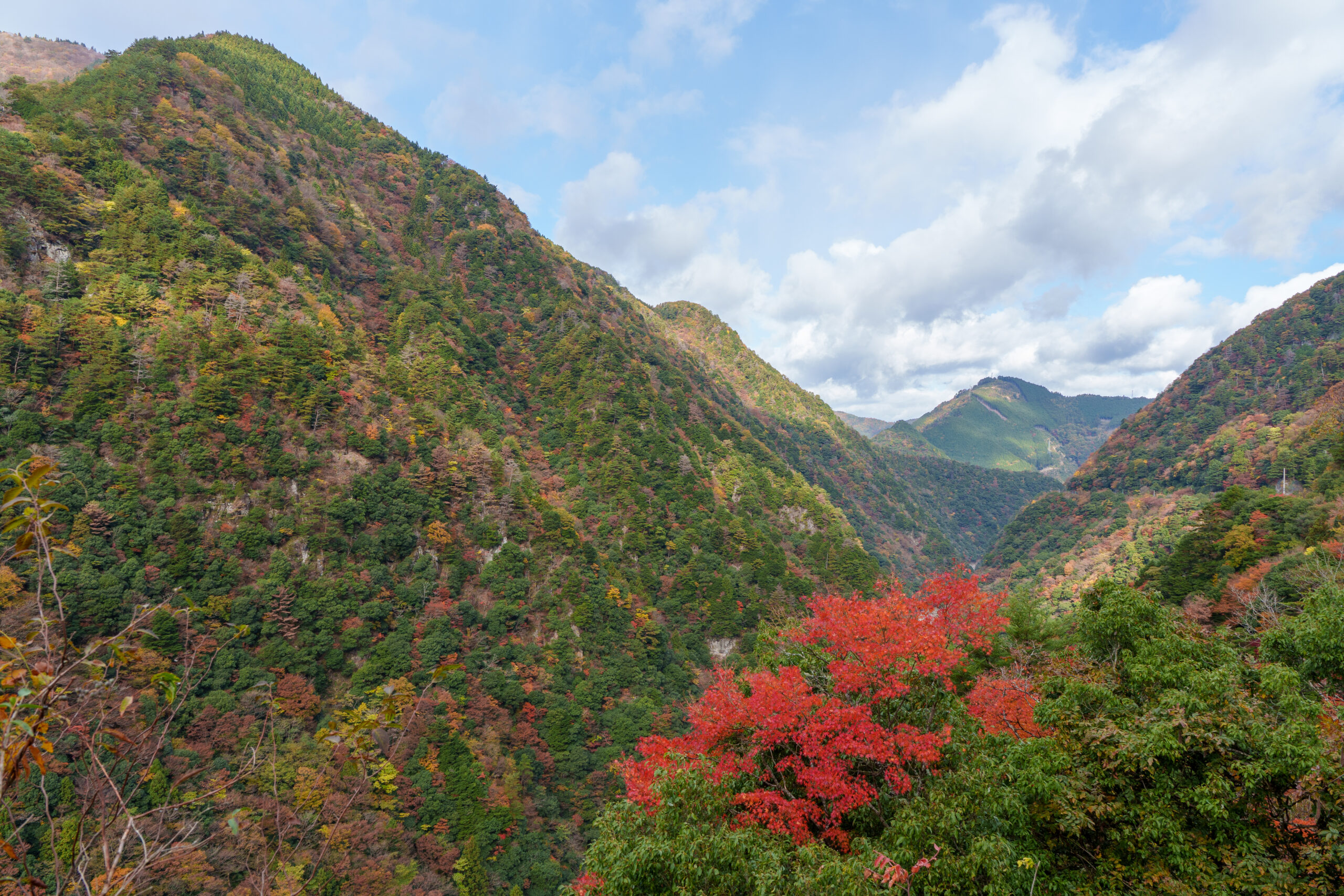 As we continued our way back through the valley, we stopped at Ryugo Cliffs Suspension Bridge. This time it was a modern metal bridge, very high across the valley with some nice autumn colours.