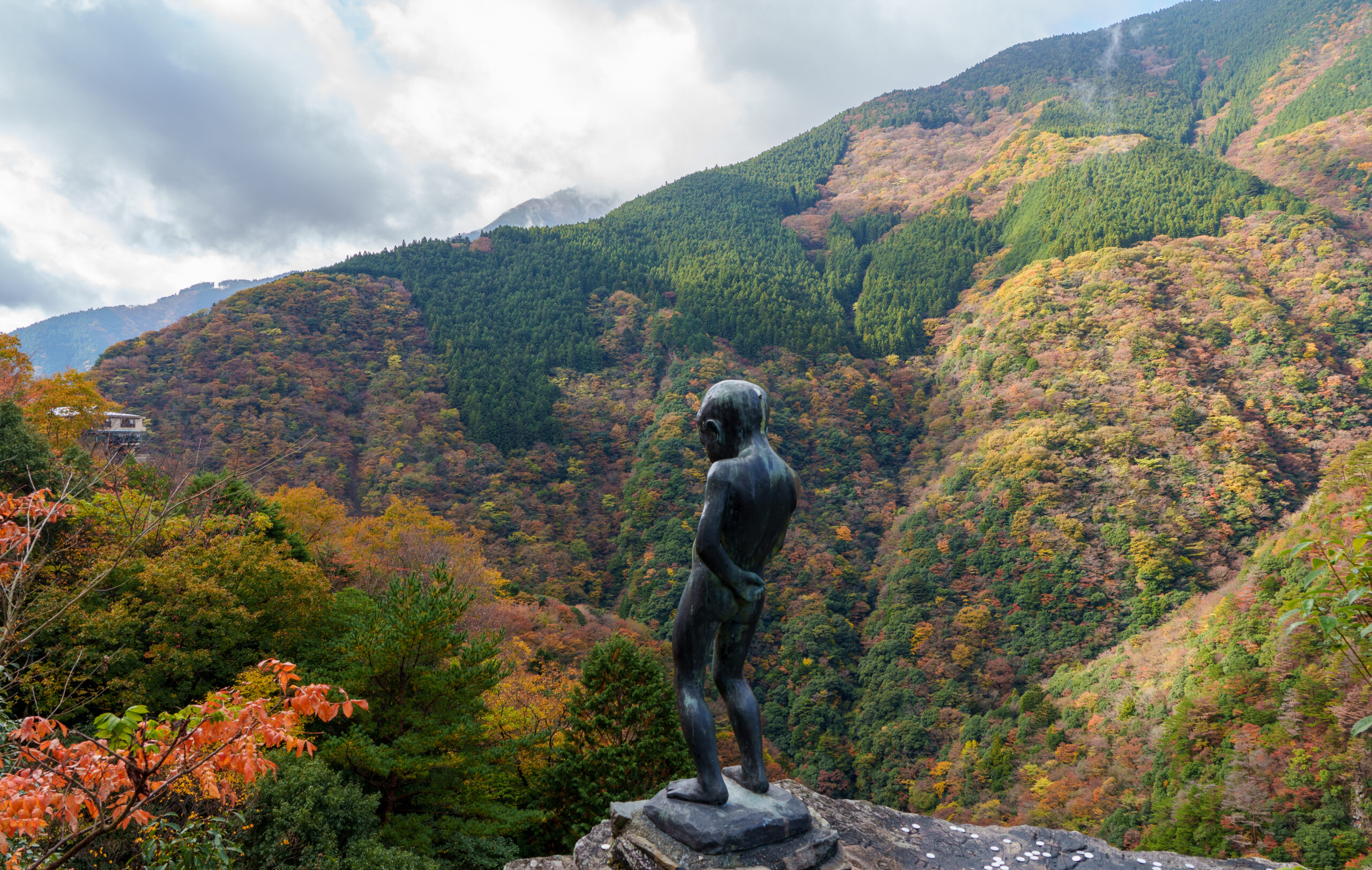 We followed a narrow winding road to some view points.  First was the rather random ‘statue of a peeing boy’