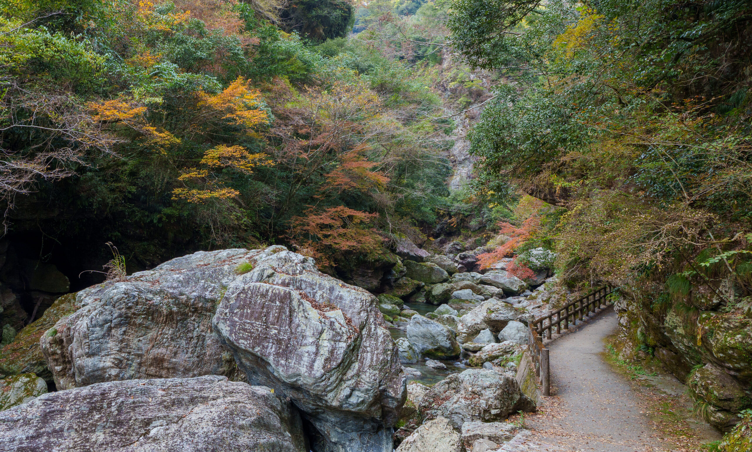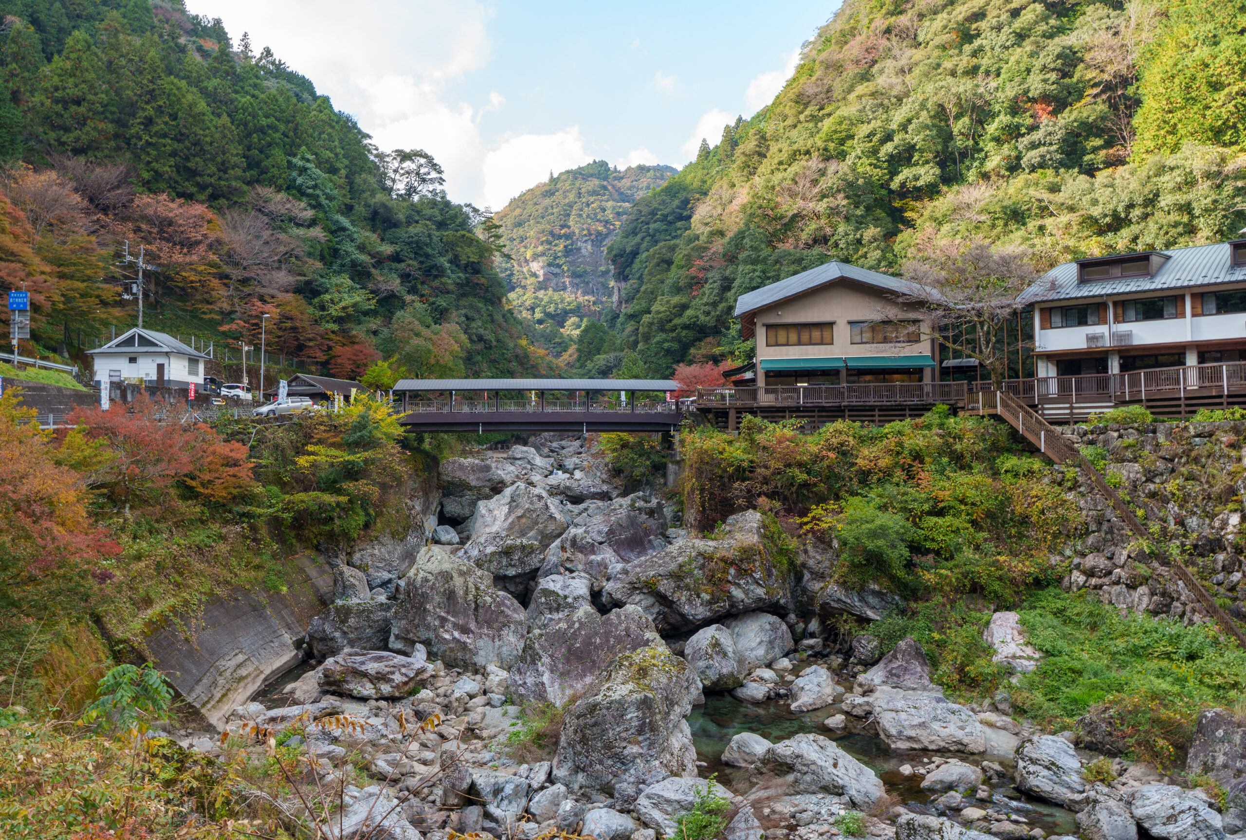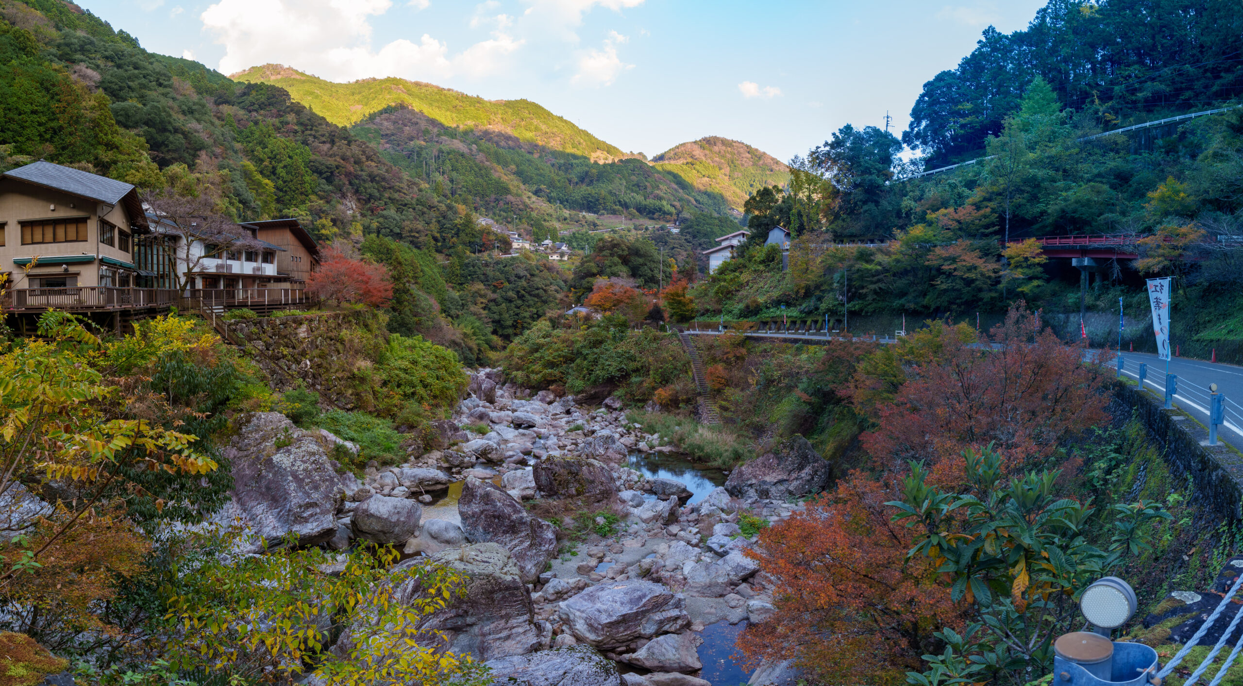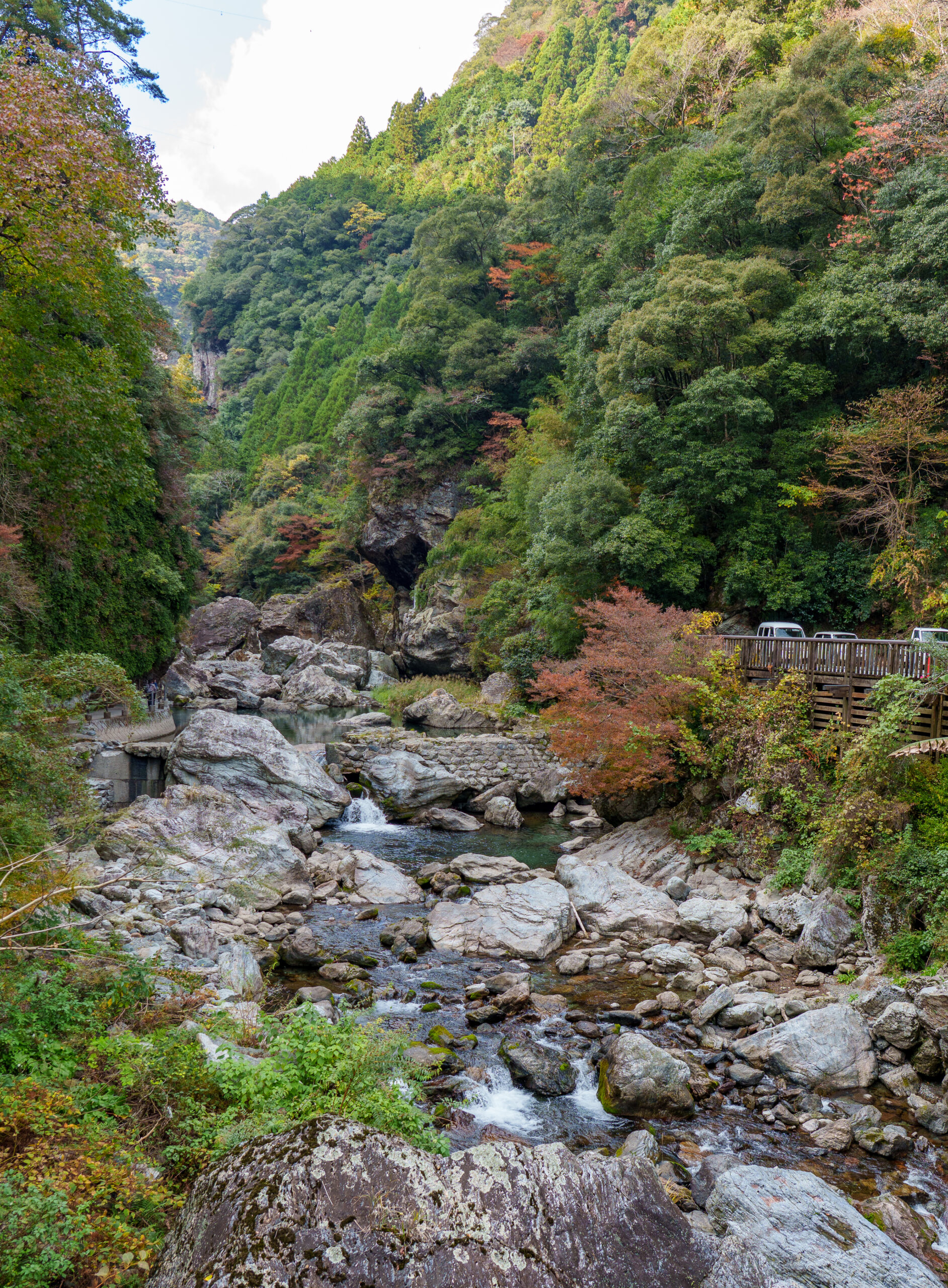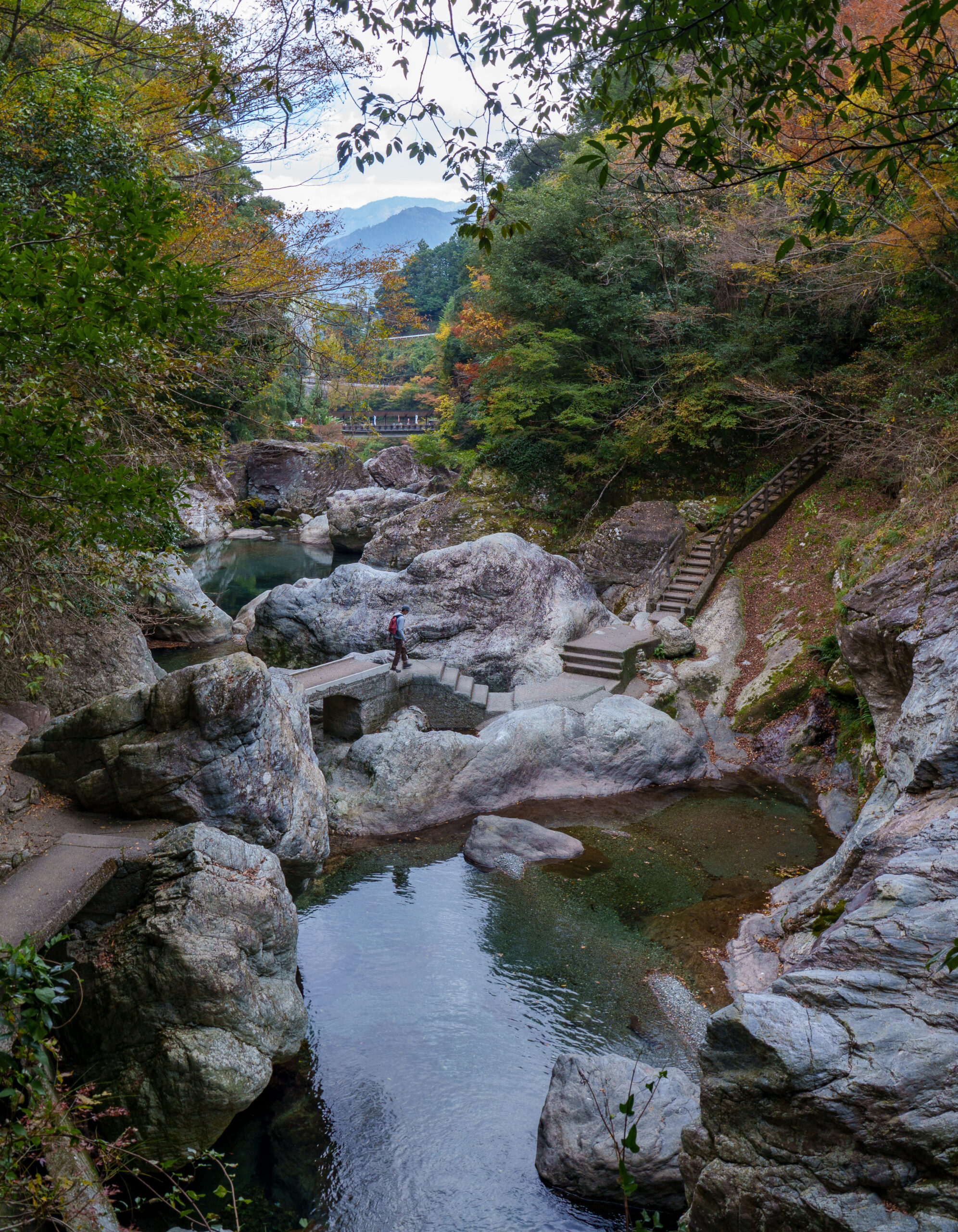 Then it was time for the final stretch of scenic driving up to Matsuyama city, stopping at another michi-no-eki along the way. There was a walk along the river to a rocky viewpoint at this stop, but it was already dark by the time we were there, so we gave that a miss!