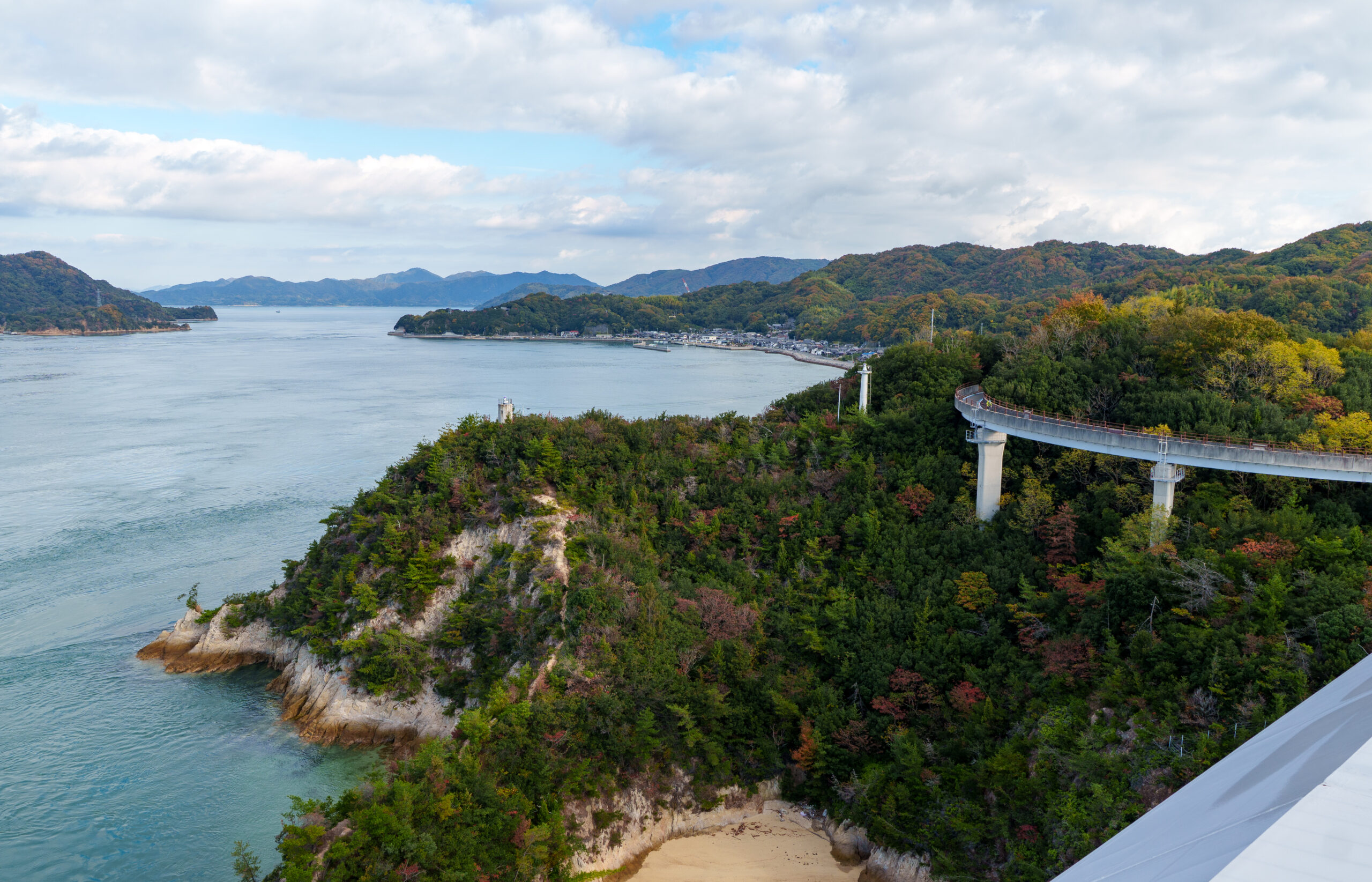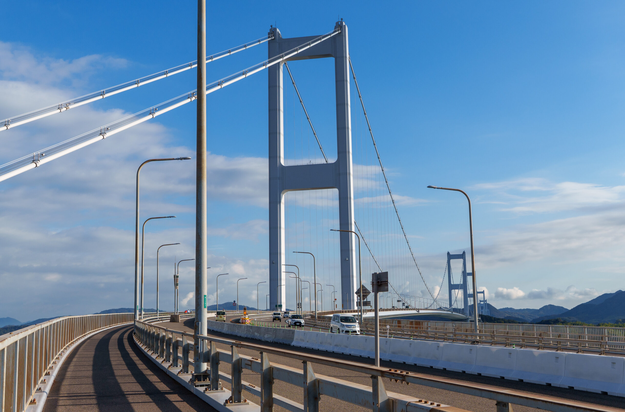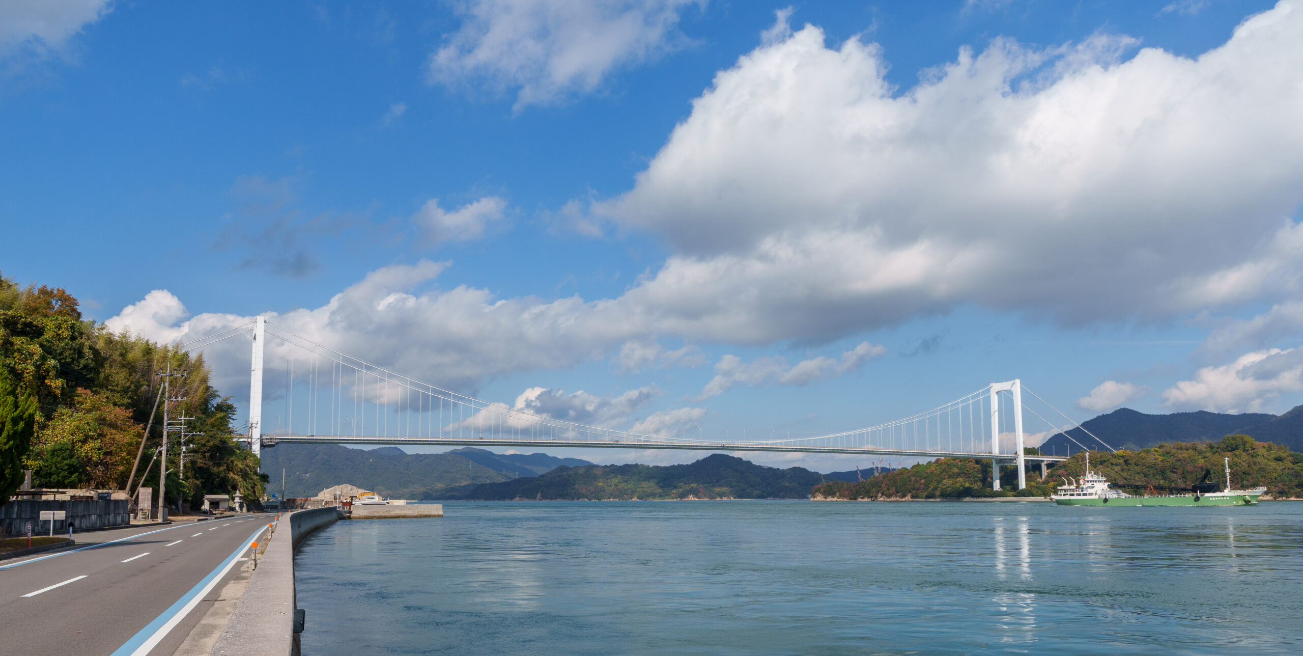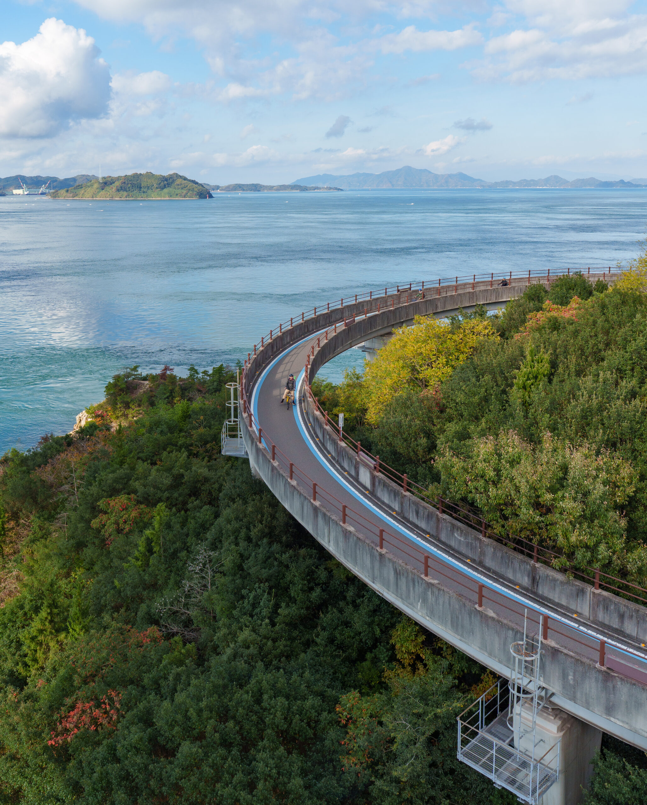 The cycle route on the islands generally follows small roads and dedicated cycle paths up to and down from the bridges, however the bridges themselves are part of an expressway, so a bit busier. The cycle route is completely separate from the road though, so you can stop and look at the view of the surround islands as much as you want.