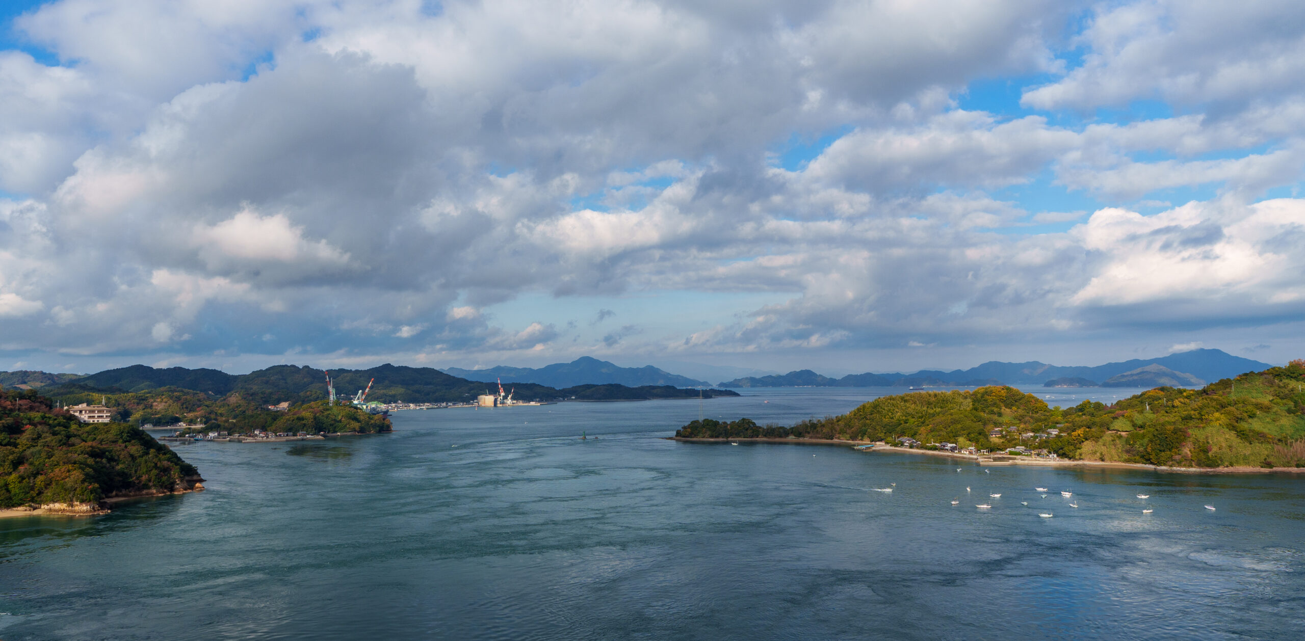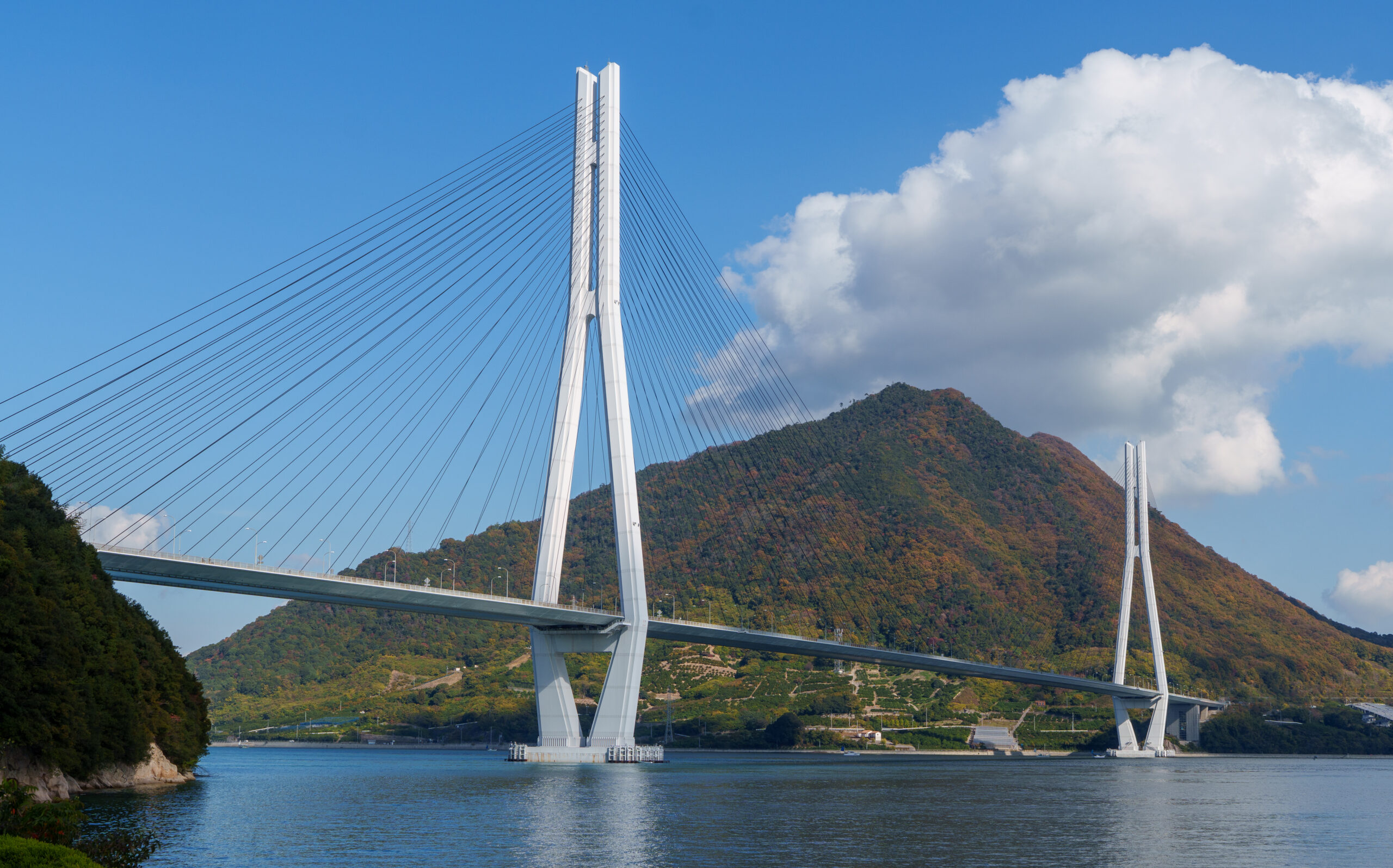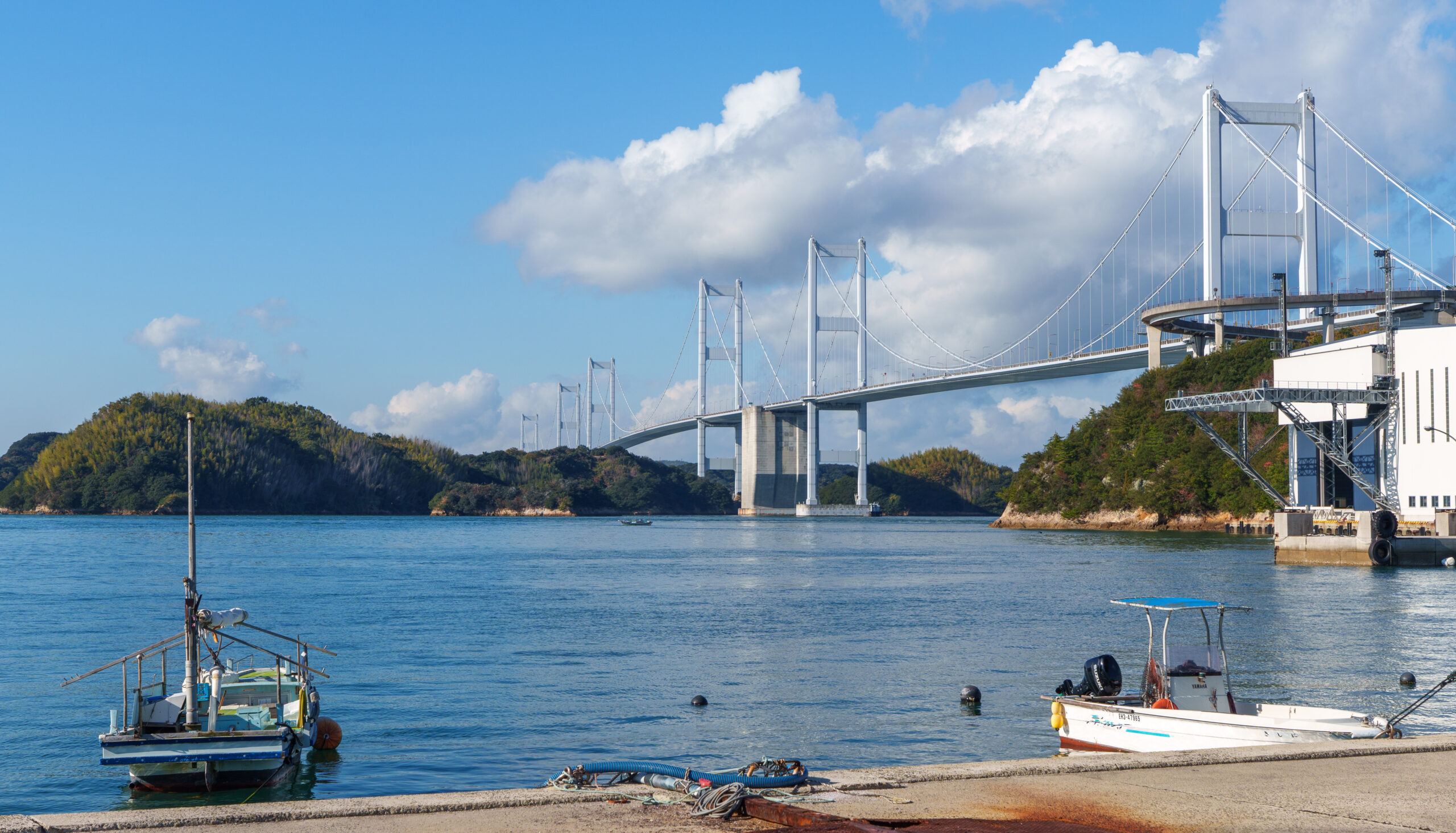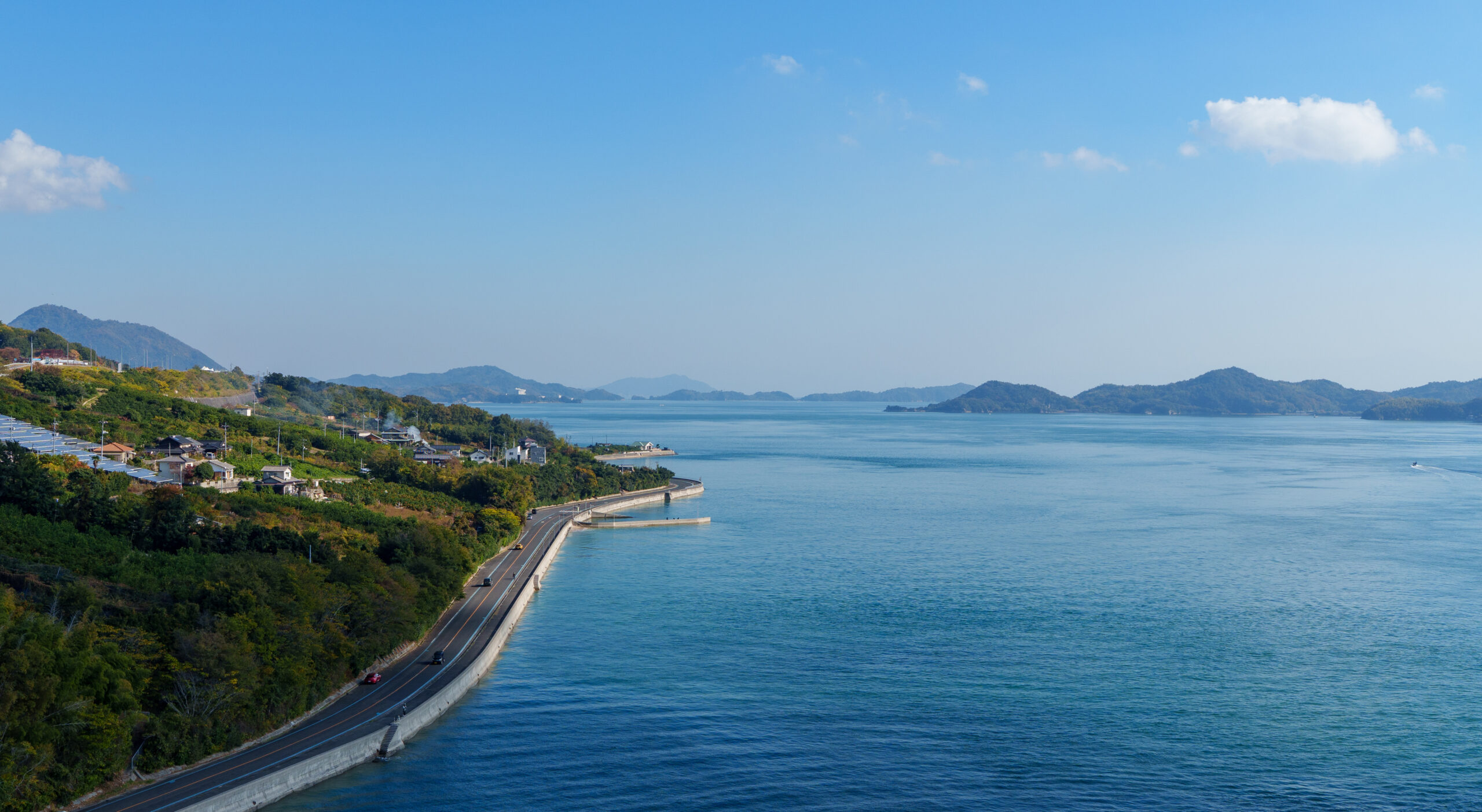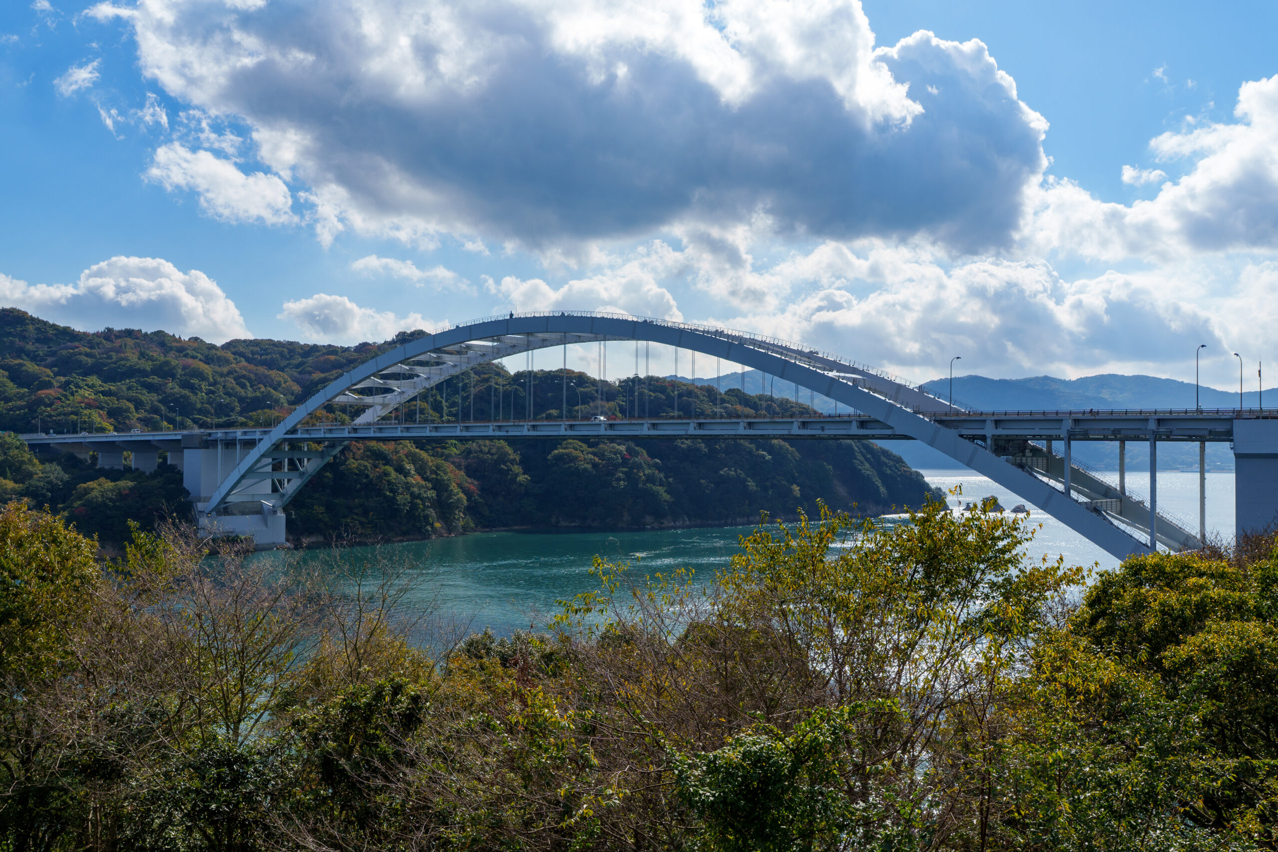 The cycle route on the islands generally follows small roads and dedicated cycle paths up to and down from the bridges, however the bridges themselves are part of an expressway, so a bit busier. The cycle route is completely separate from the road though, so you can stop and look at the view of the surround islands as much as you want.