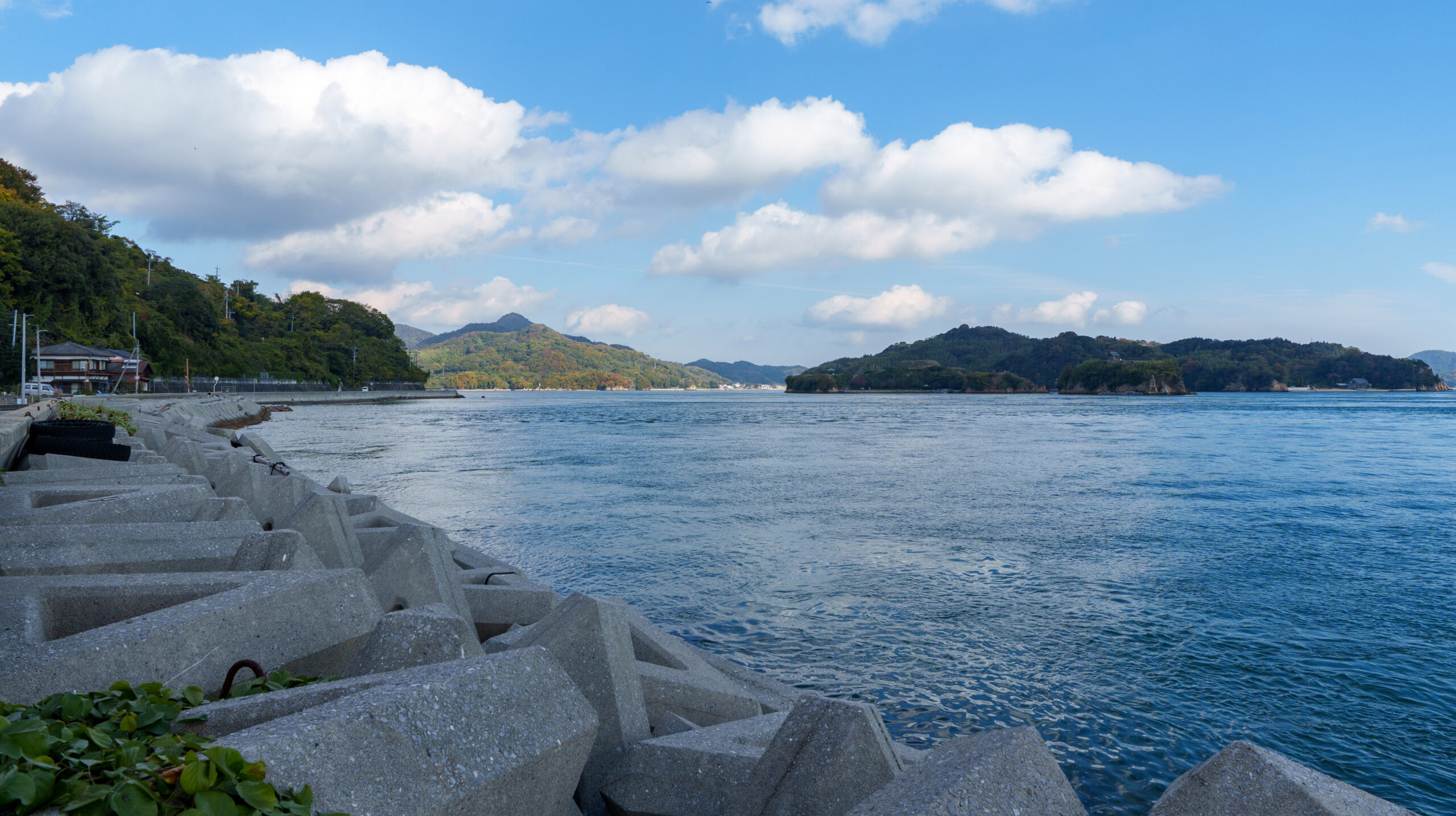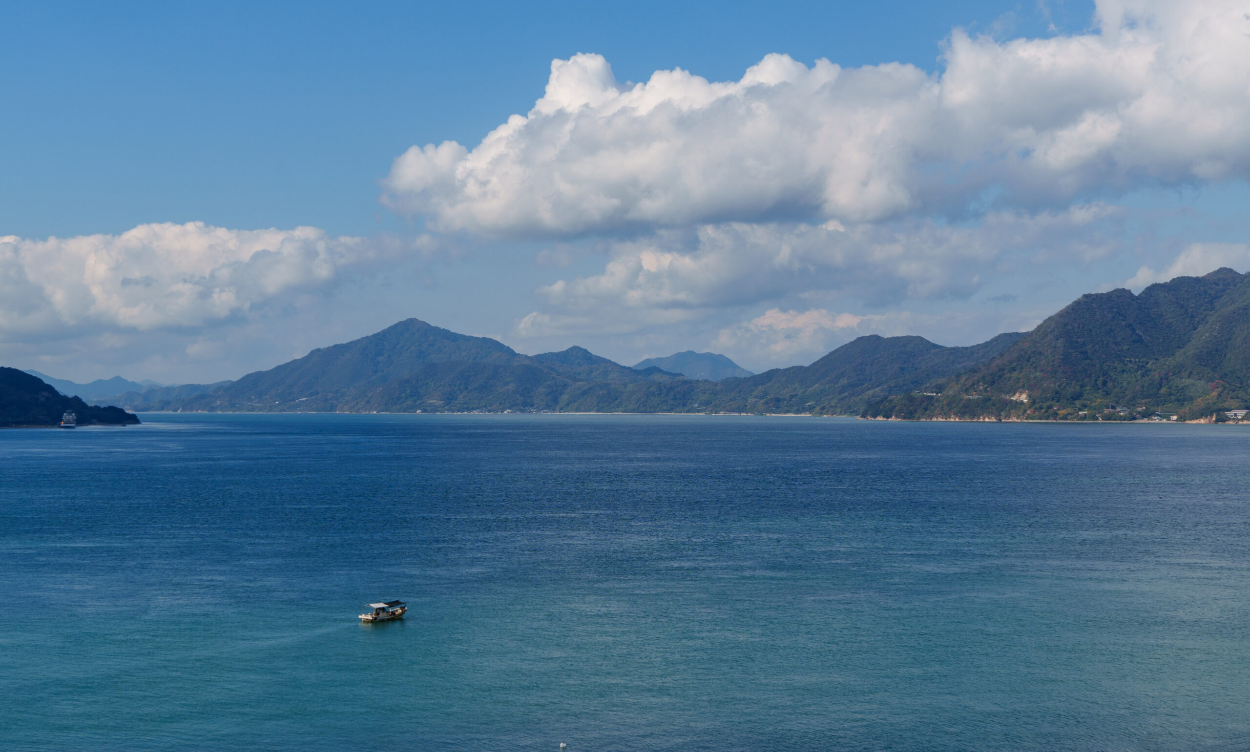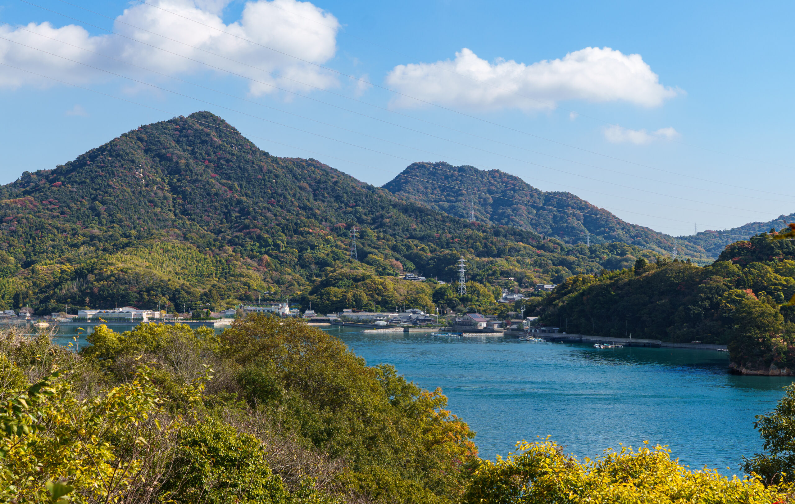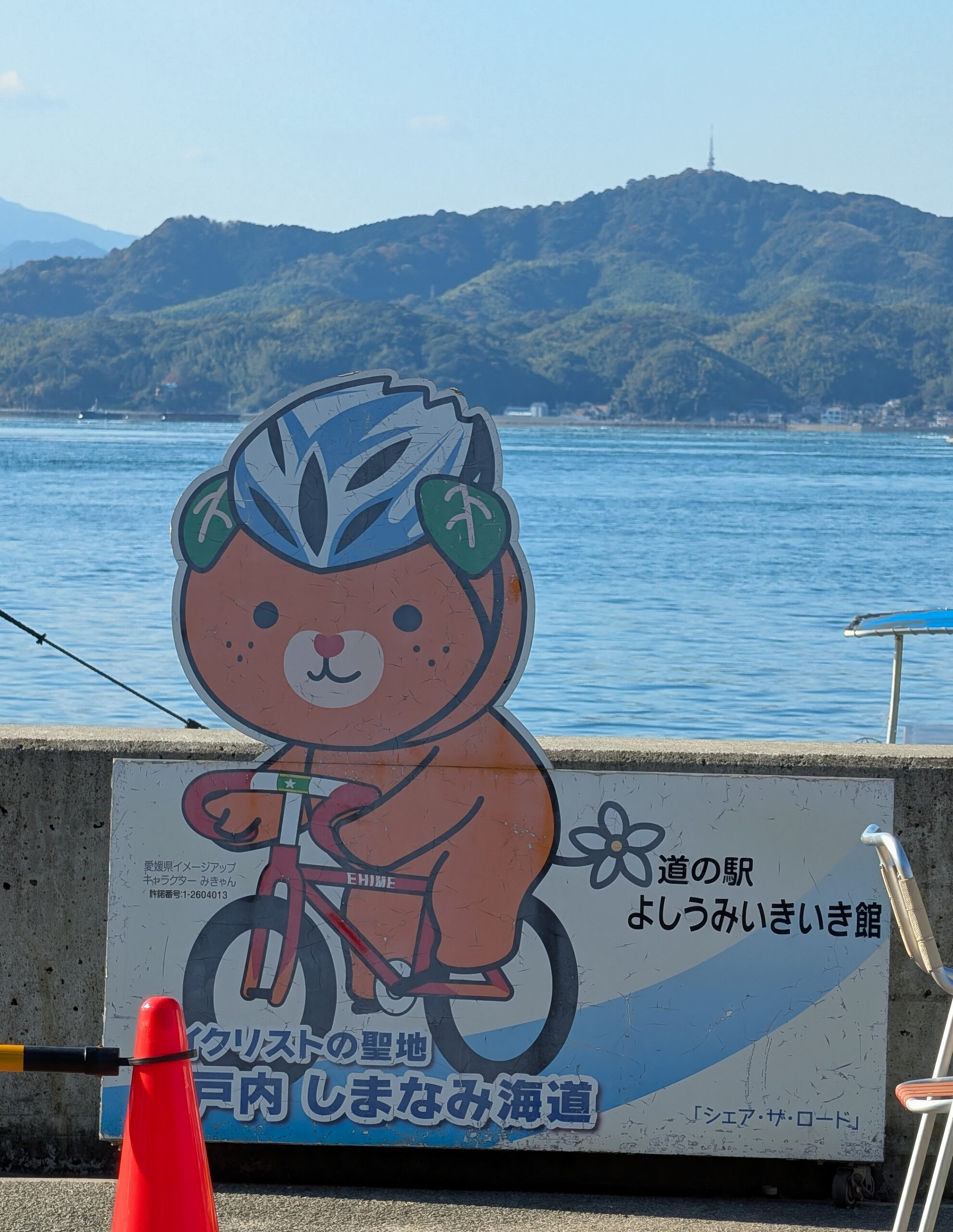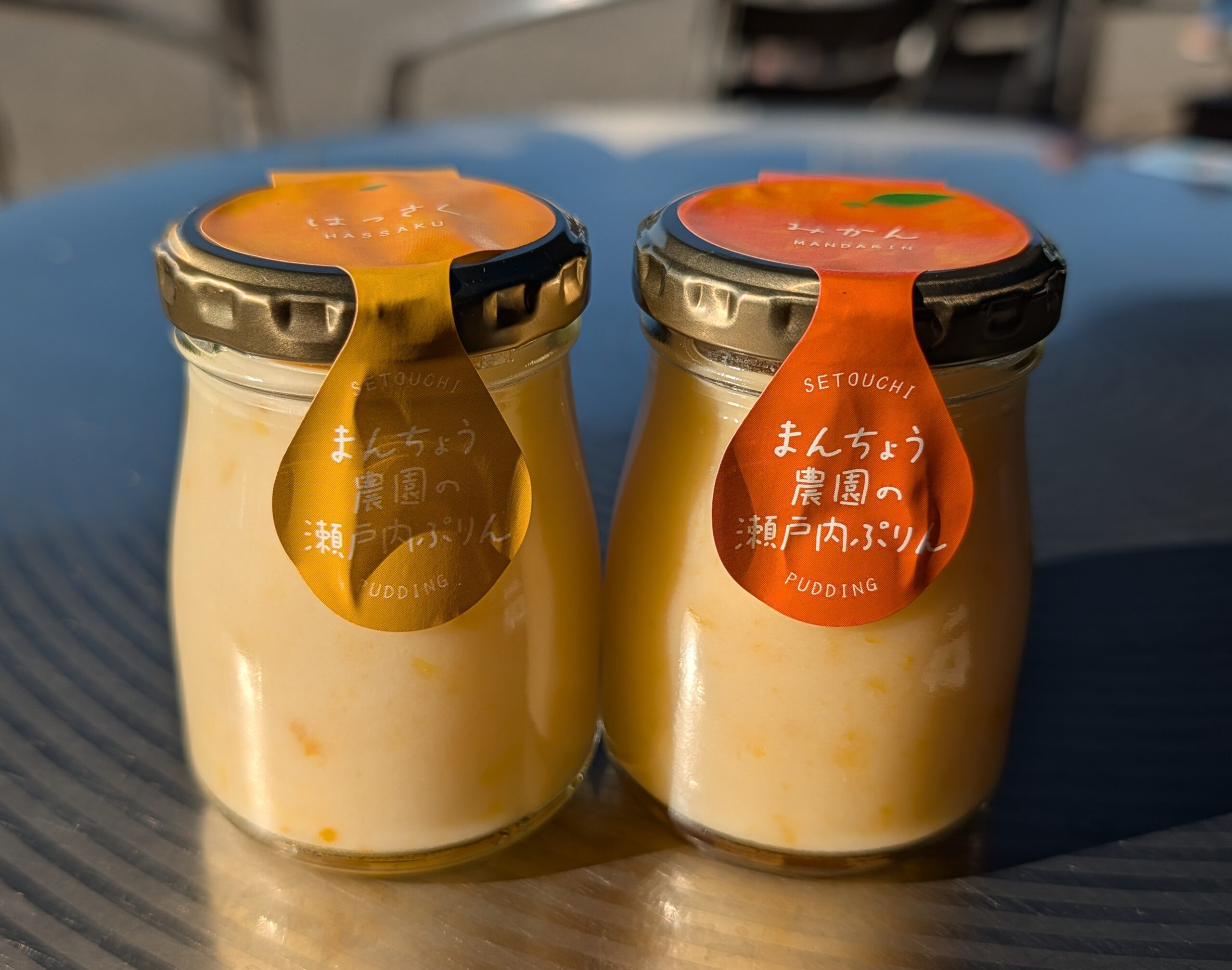 The first island we would be cycling through as Oshima. There are rest stops all along the route, so we made a stop at the first of these, Yoshiumi Iki-iki-kan and bought some puddings made with different types of local oranges to try whilst enjoying the view.