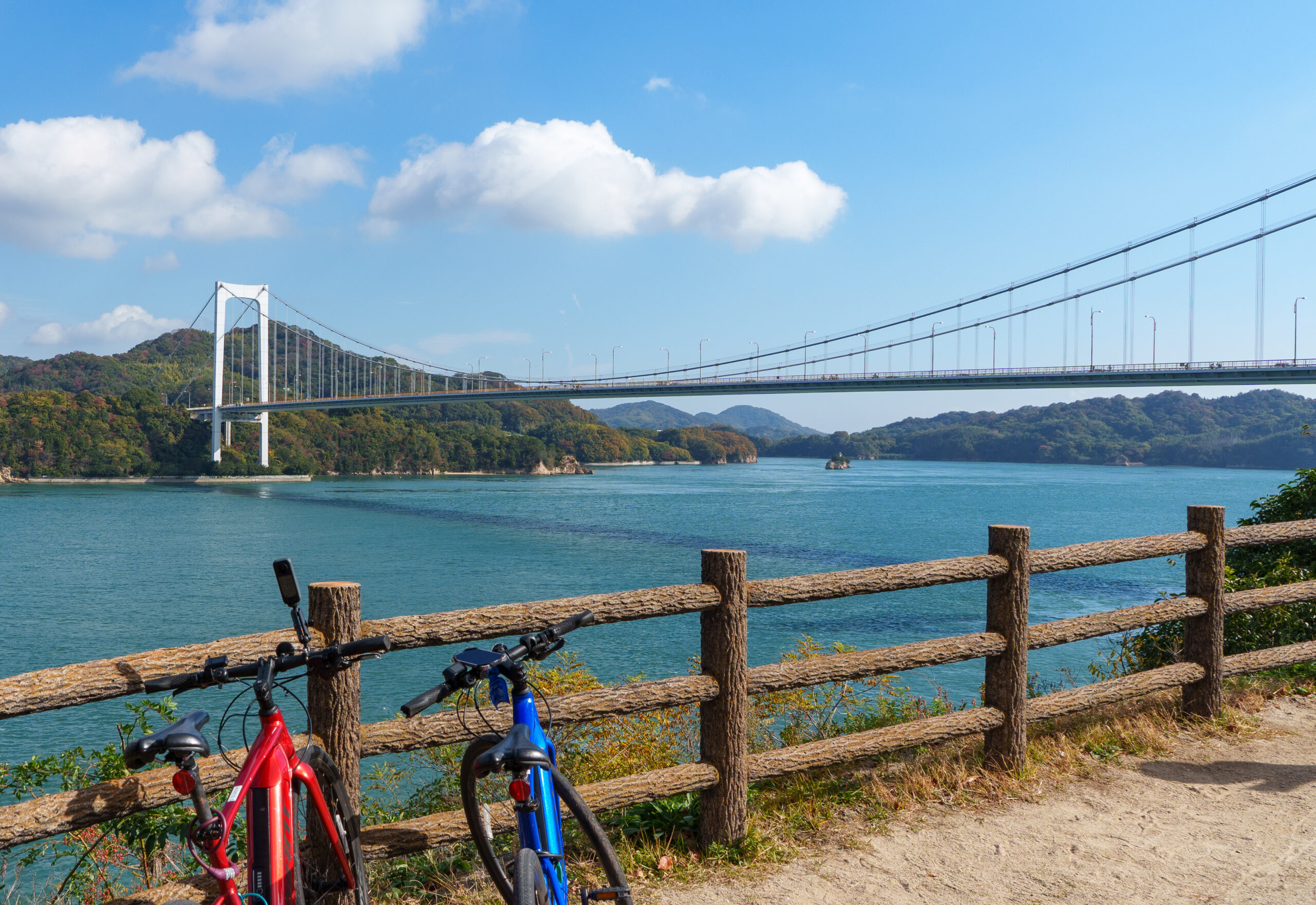 We left our hotel early and drove an hour up to Sunrise Itoyama, on the top coast of Shikoku. Here we were collecting a pair of e-bikes for another day of cycling.