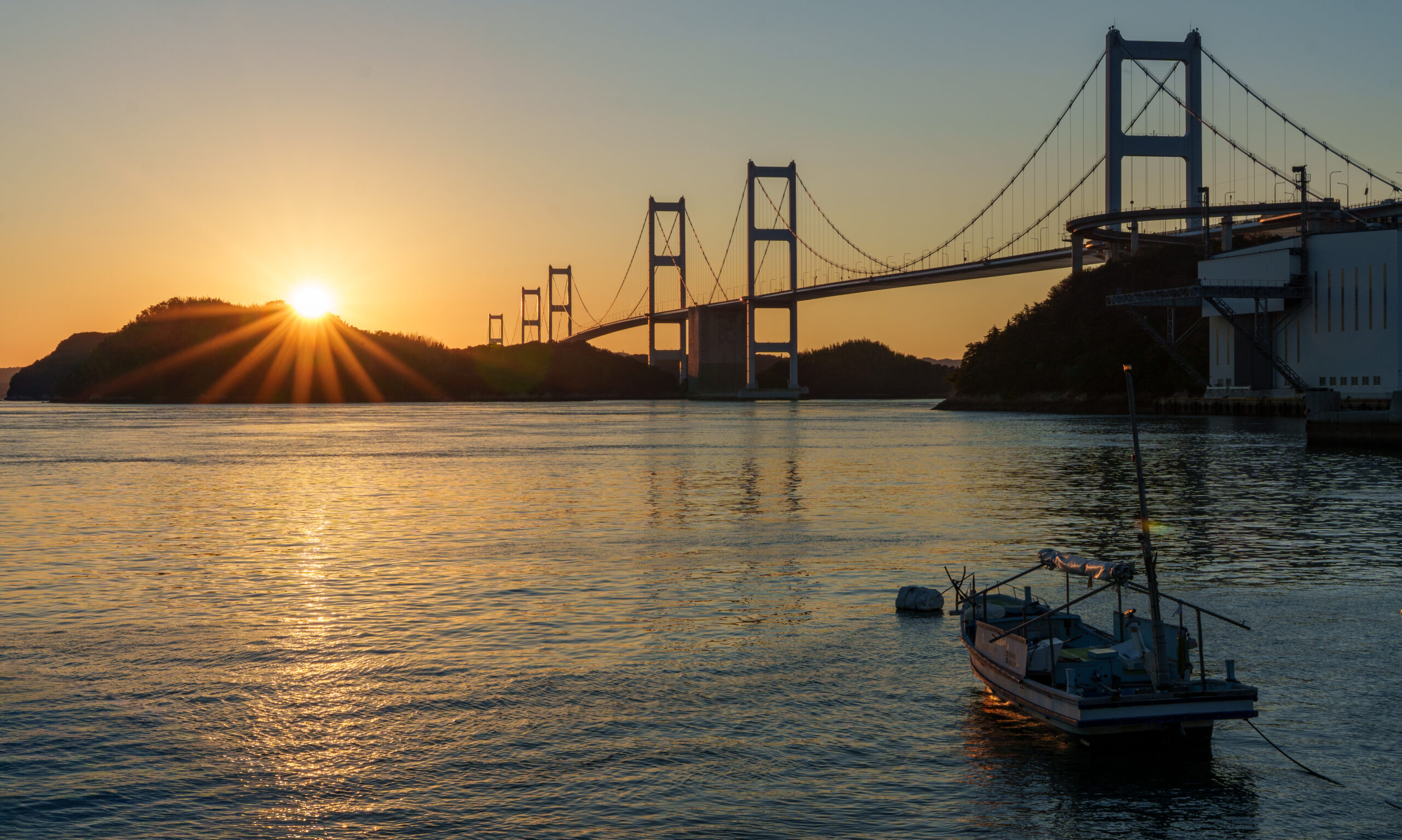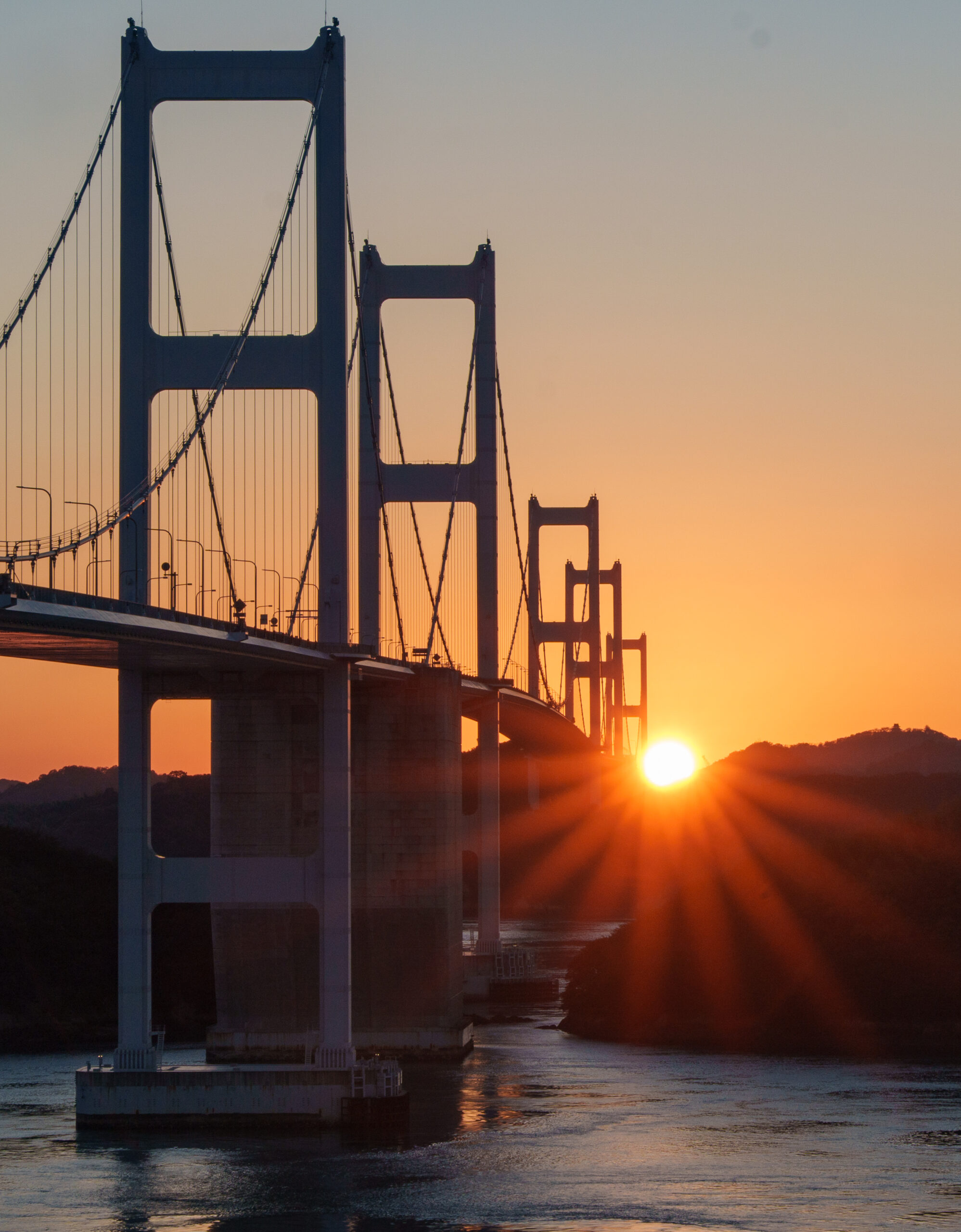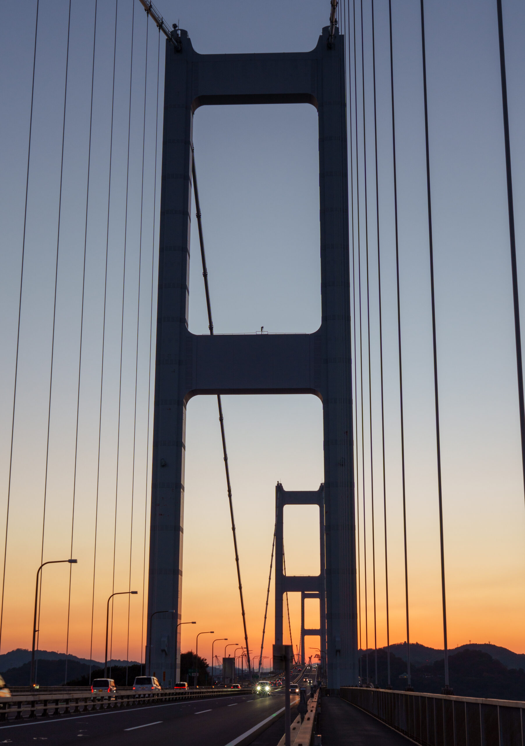 By the time we were at the long Kurushima bridges, the sun was setting which made for some lovely views for the last stretch.