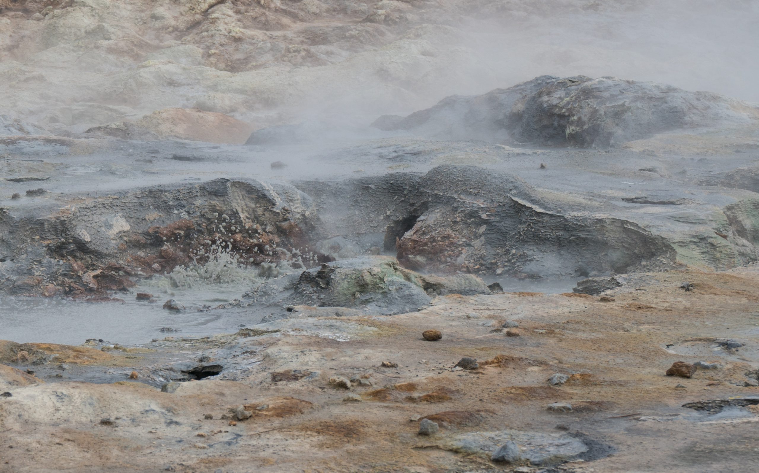 Final stop in the Myvtan area, and completing the ‘diamond circle’ sites was Hverir. Hverir is a geothermal area at the base of Namafjall, complete with mud springs, steam vents, fumaroles and a really strong sulphur smell!