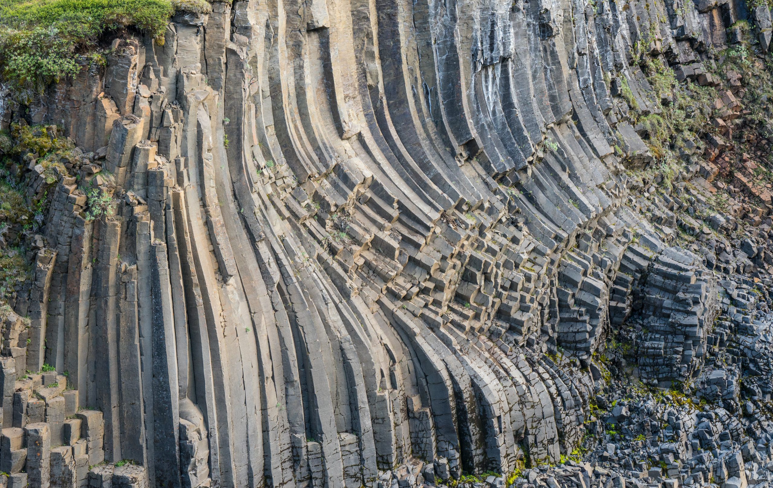 We took a detour off of route 1 down a long steep gravel road to visit Studlagil Canyon. The canyon and its interesting basalt rock formations were only revealed in 2009 when a new hydroelectric power station reduced the water level of the river. We unfortunately only had time to visit the viewing point on the east side. If we had had the time (and energy – it had already been a long day!) we would have done the longer walk along the west side for better views further down into the canyon.