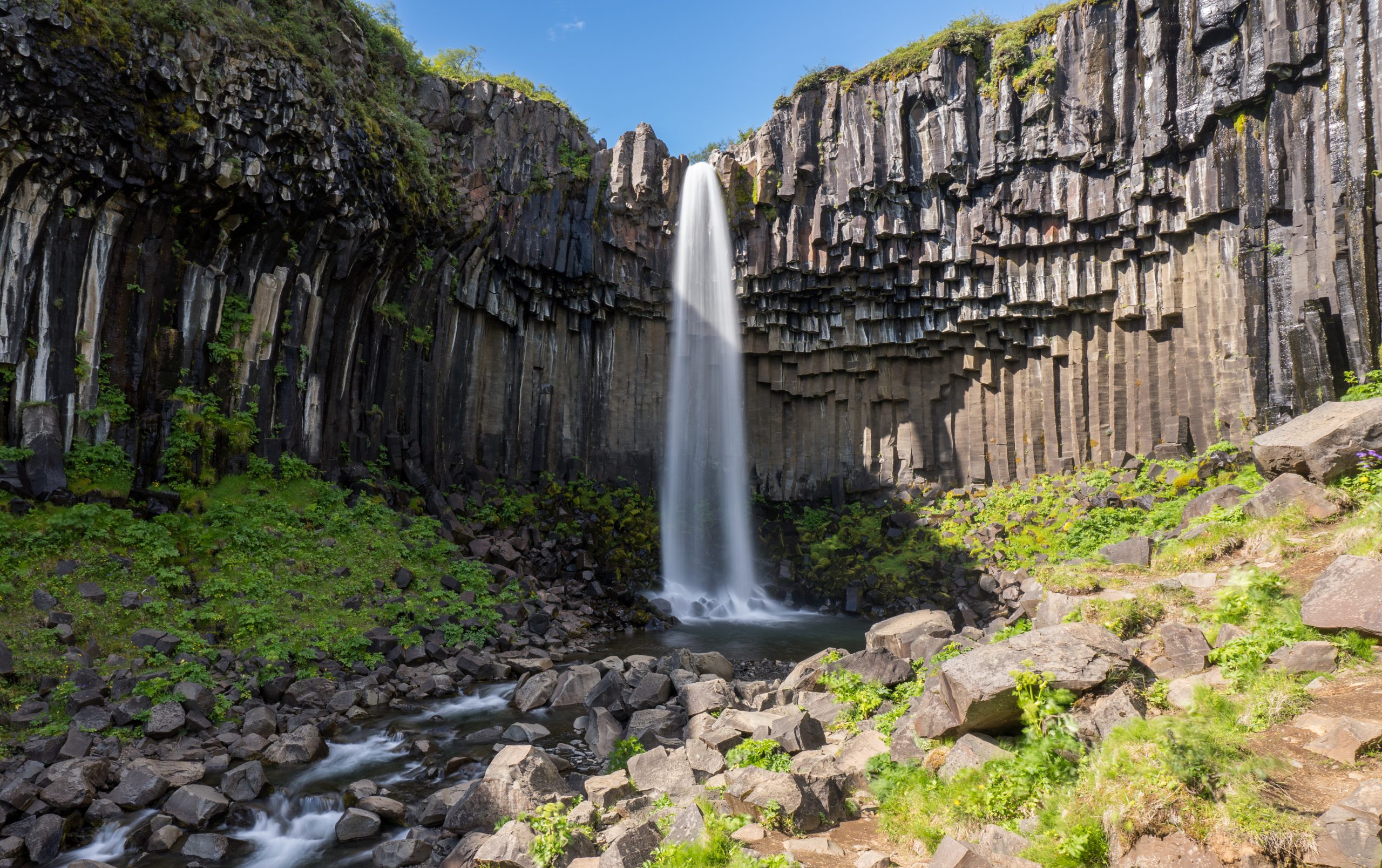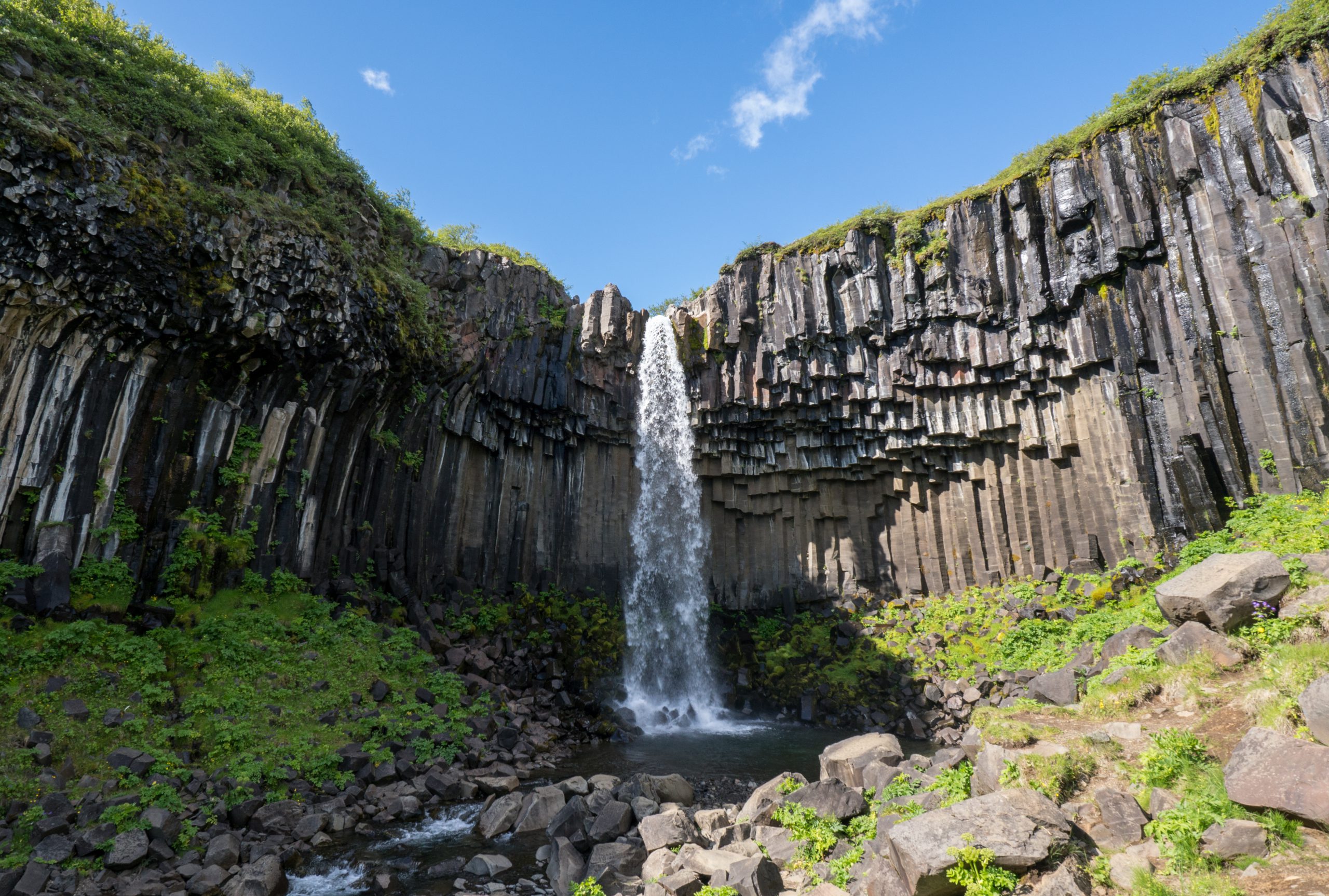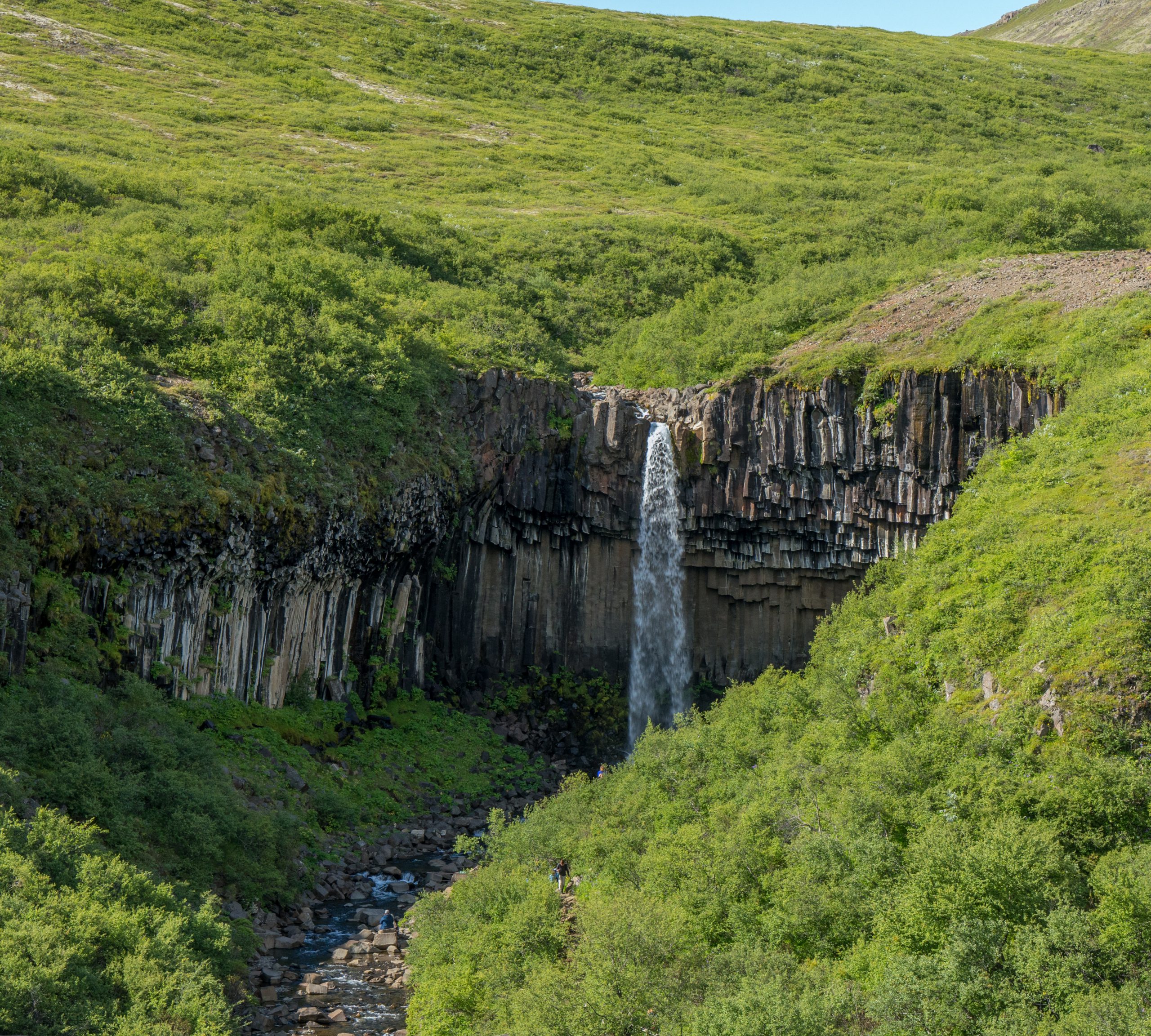 Today was lovely clear skies, which was great as we had a hike I had been particularly looking forward to planned – walking up along the edge of Múlagljúfur canyon, to Hangandifoss. one of the tallest waterfalls in Iceland. The trail is a lot less known than other sites and the track to the carpark isn’t signposted on Route 1, so there were only a few other people there. The views were really impressive, not sure the photos do it justice!