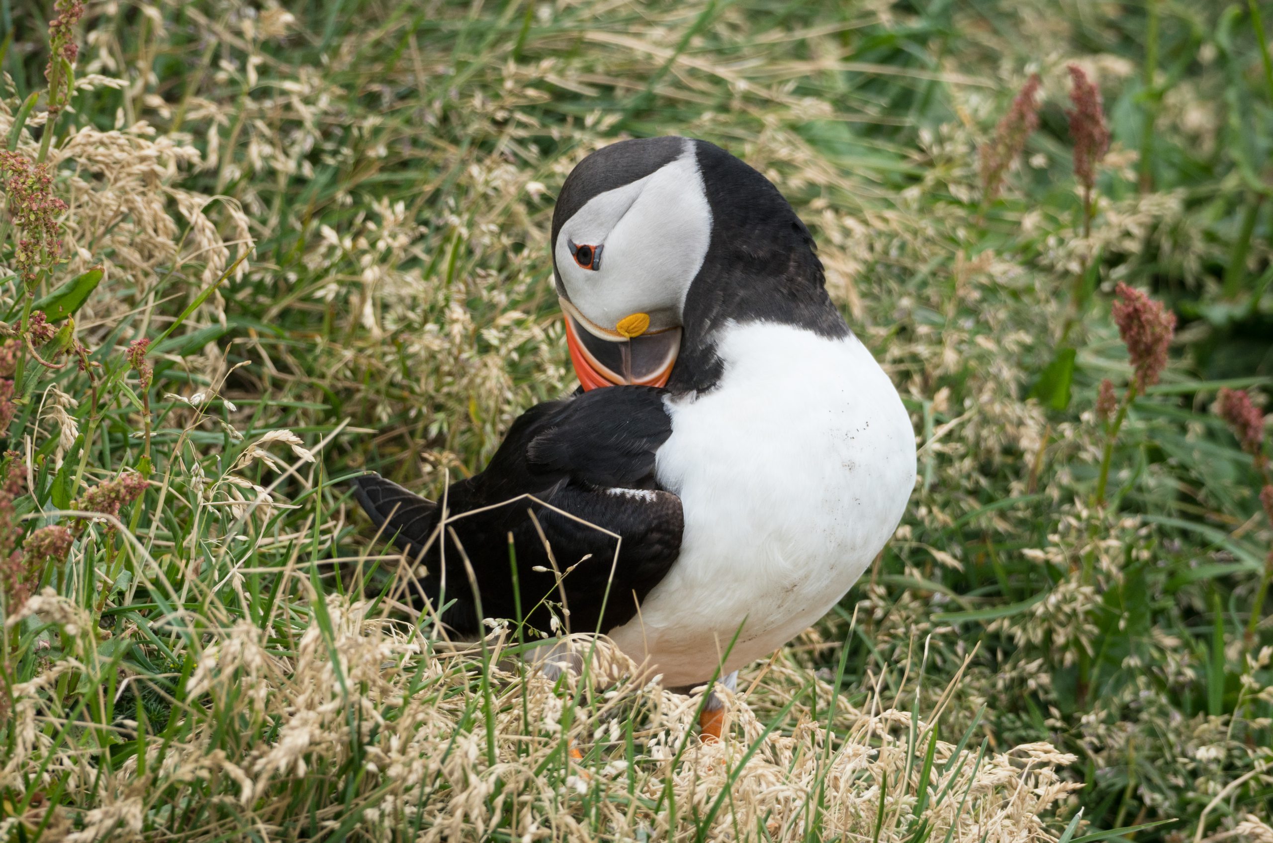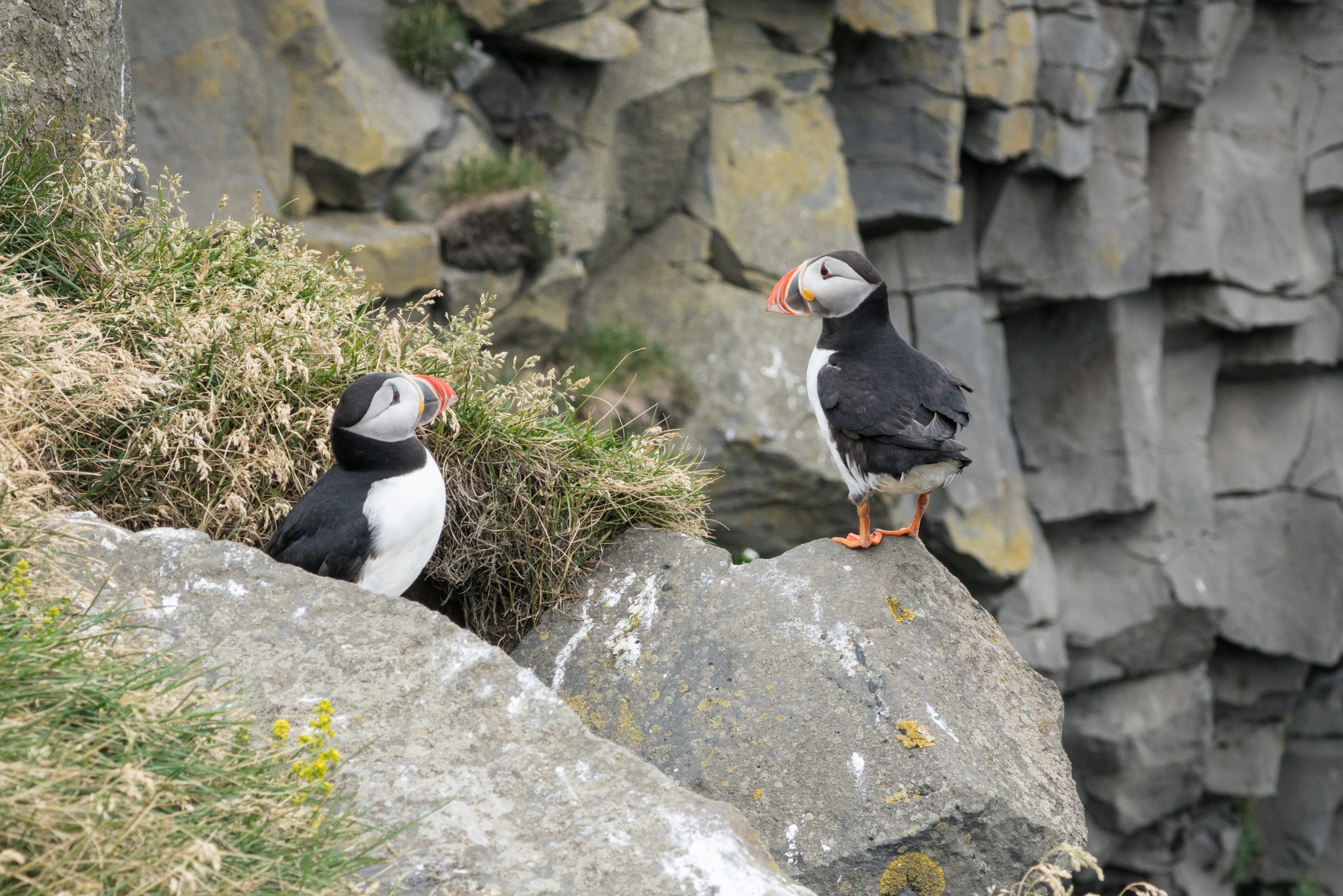 We back-tracked slightly and visited the cliffs at Dyrhólaey for views over the black beaches, but more importantly, another chance to see puffins! We didn’t think we’d get a better chance to see them than we had had in the north, but we were wrong – here they were really close to the footpaths just pottering about, so again here are many many puffin photos…