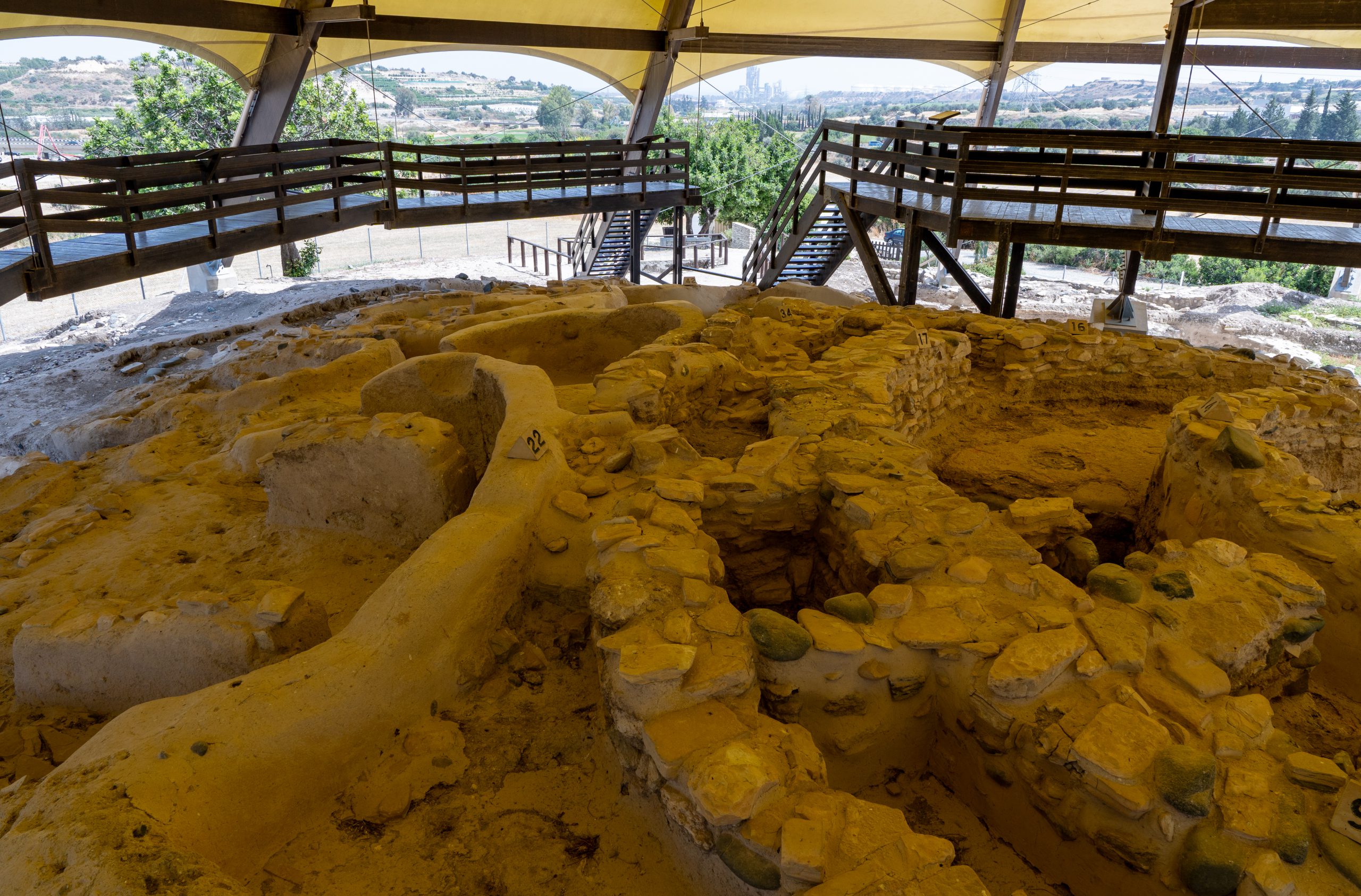 The next archicalogical stop on our journey was the Tenta at Kalavasos. It is the remains of a small Aceramic Neolithic settlement from 8000BC, protected by a huge pyramidal tent structure
